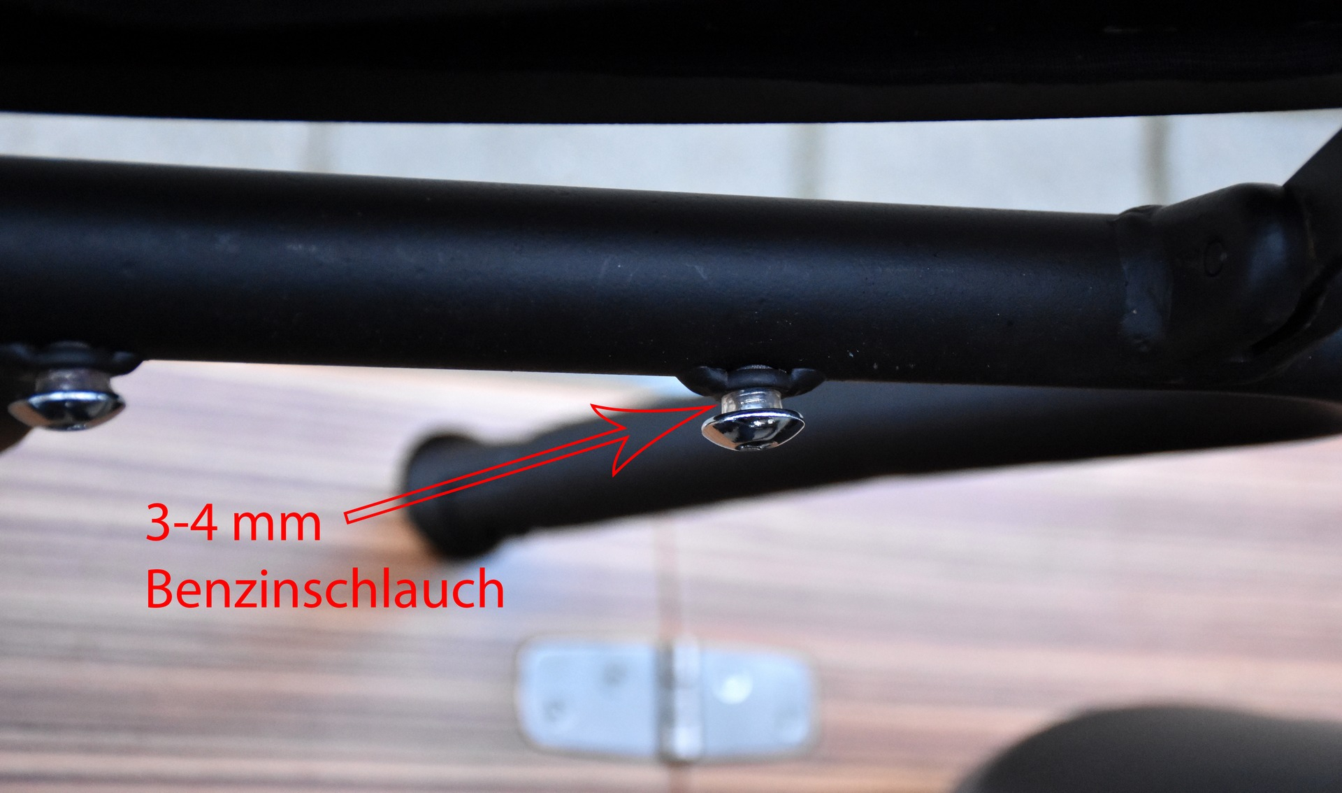 • Als Distanzstück hab ich ironischerweise ein Stückchen Benzinschlauch genommen, jewels ~3-4mm lang und damit die Schrauben fixiert.
