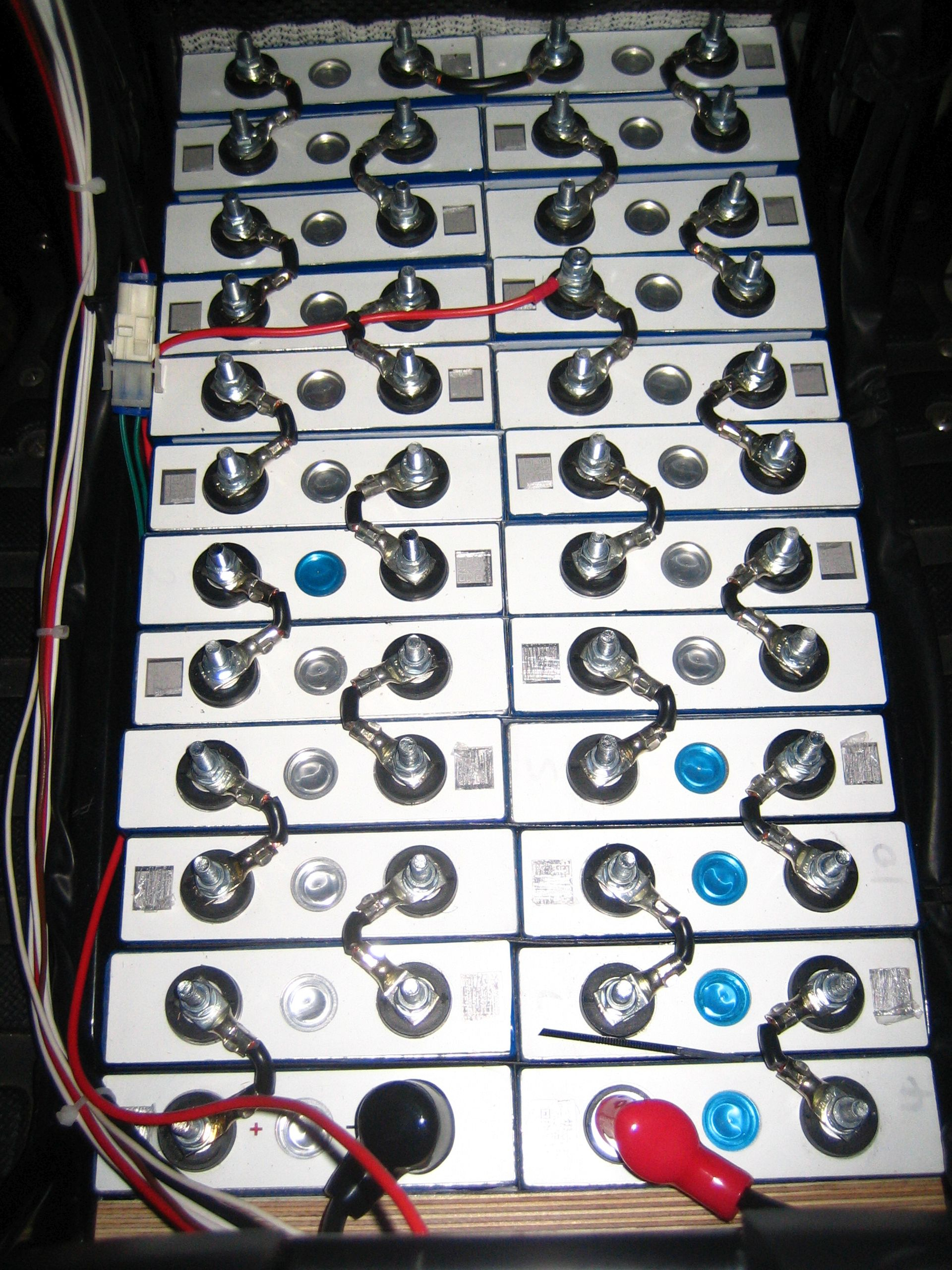 Bei Spannungen >48V (Nennspannung) beginnt in der Elektromobilität der Hochvoltbereich. Deswegen werde ich hier nicht weiter ins Detail gehen. Für 48V Nachbauer mit 16 Zellen noch ein Tipp: Die Schlaufen der Brücken länger auslegen - kurze Kabelbrücken sind im eingebauten Zustand m. E. zu starr. Werden Brücken/Verbinder (Mit einem Langloch) mitgeliefert, kann man diese sicher auch verwenden.