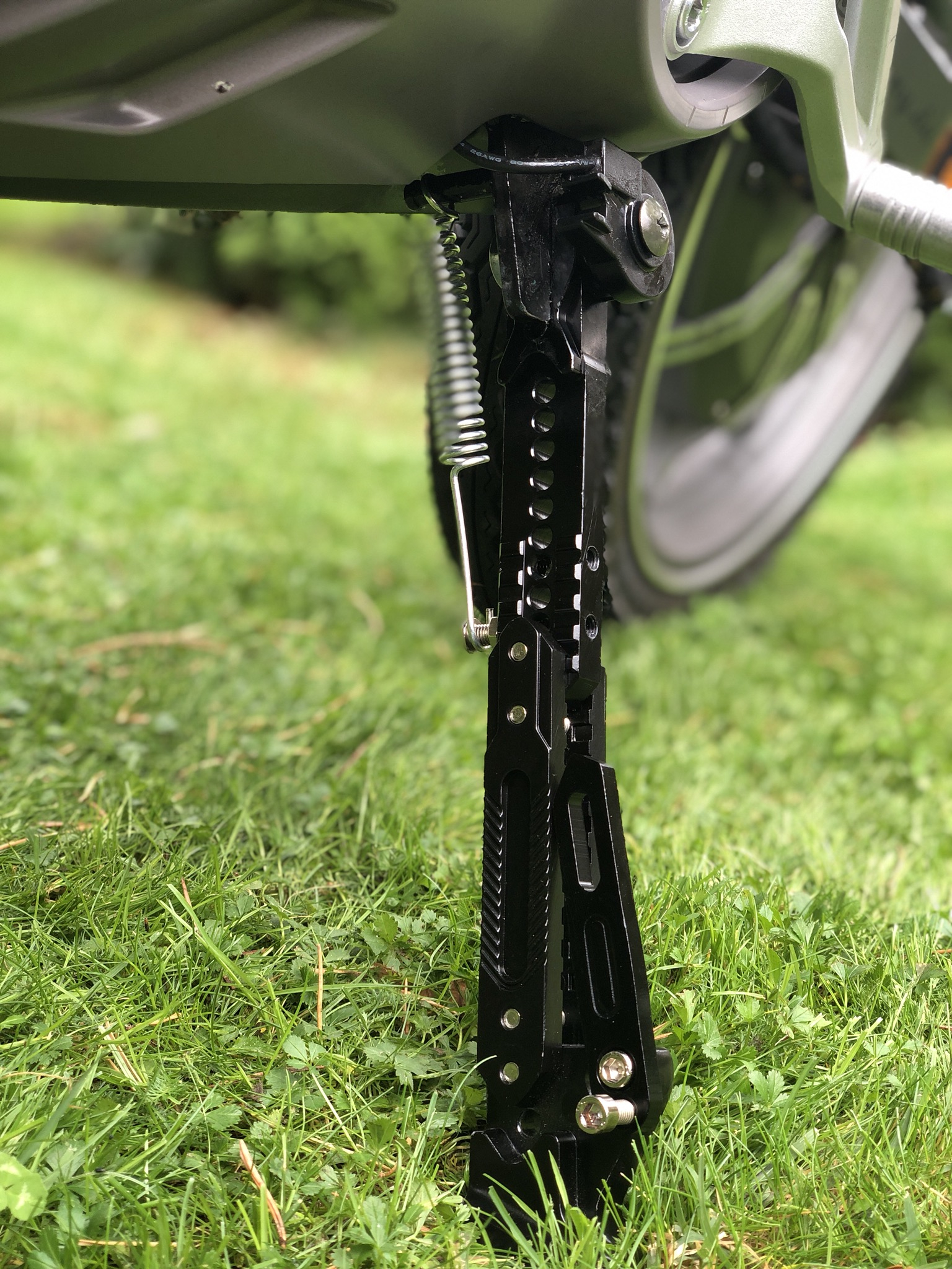 Mit dem Originalständer geht es auch - sie steht dann aber schon schräg.