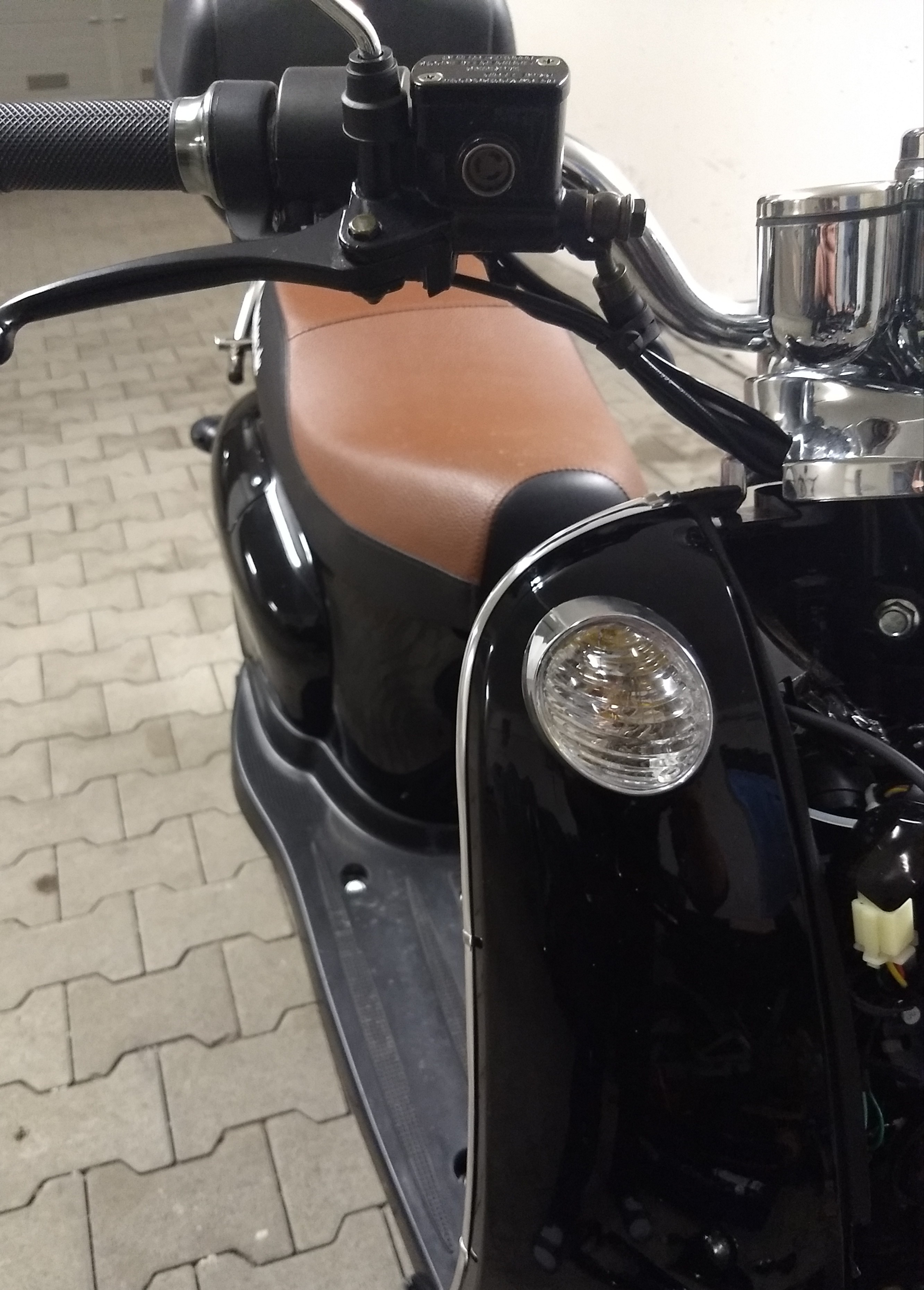 Hatten einen kleinen Sturz mit dem Roller und nun war der linke vordere Blinker futsch. Hab dann auf Amazon ein paar andere Blinker für den Yy50qt-15 gefunden, und passt auch wunderbar. Falls wir wieder einen Sturz haben sollten, sitzt zumindest das Teil besser geschützt in der Verkleidung.