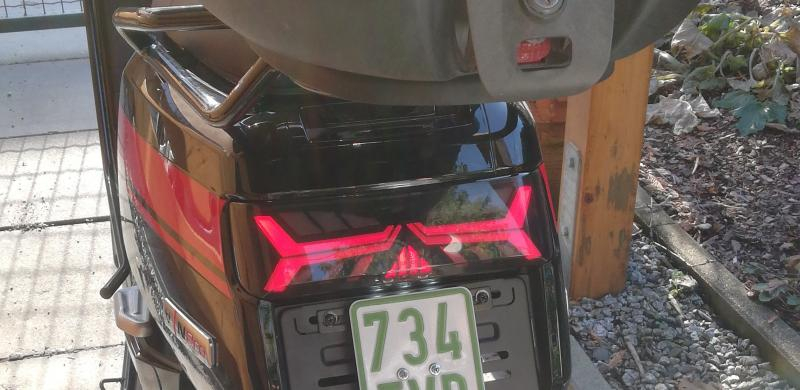 Und heute endlich die neue Rückleuchte montiert. Sie lag hier jetzt schon bald zwei Wochen herum, geholt habe ich sie bei meinem Händler vor Ort, mit E-Kennzeichnung, 149€ (e-scooter-team).