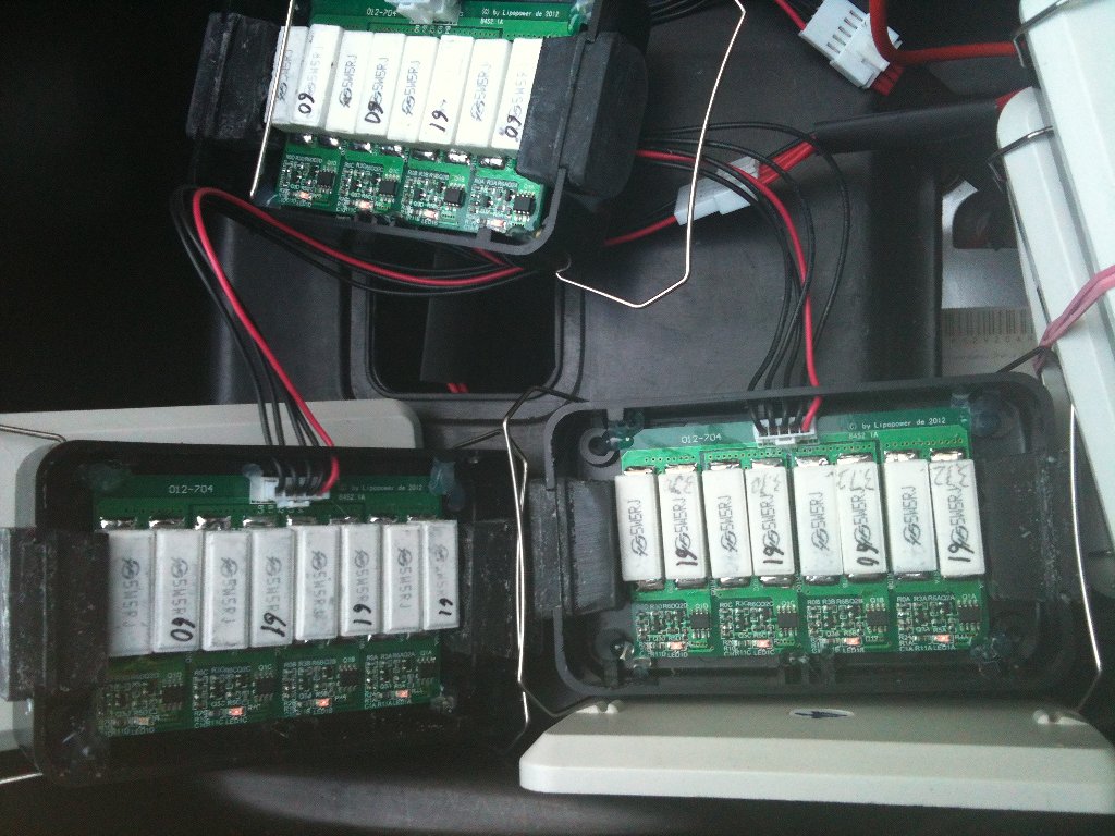 an den anderen Akkus montiert sein. Die Boards wurden mittels Heiskleber fixiert.