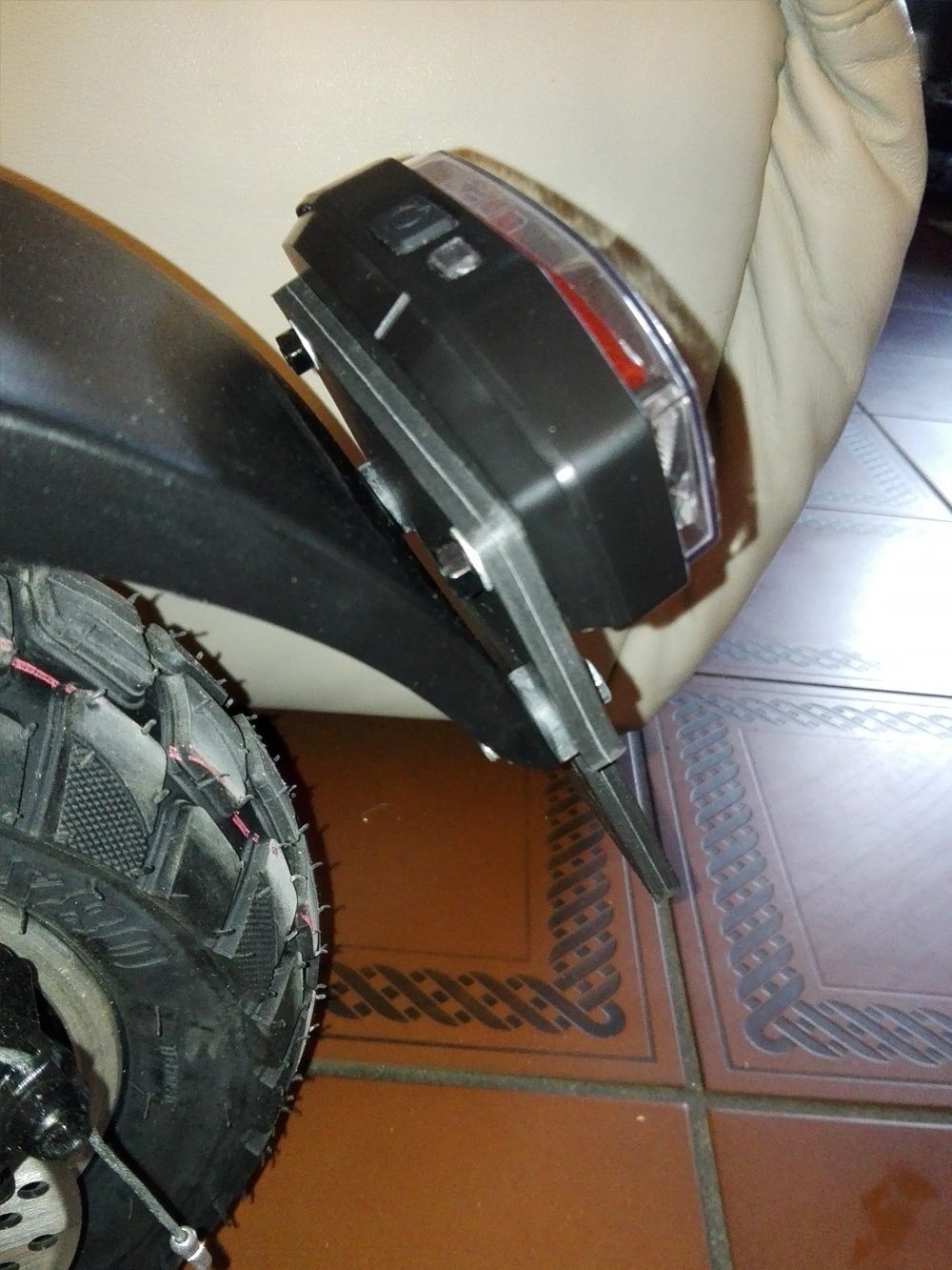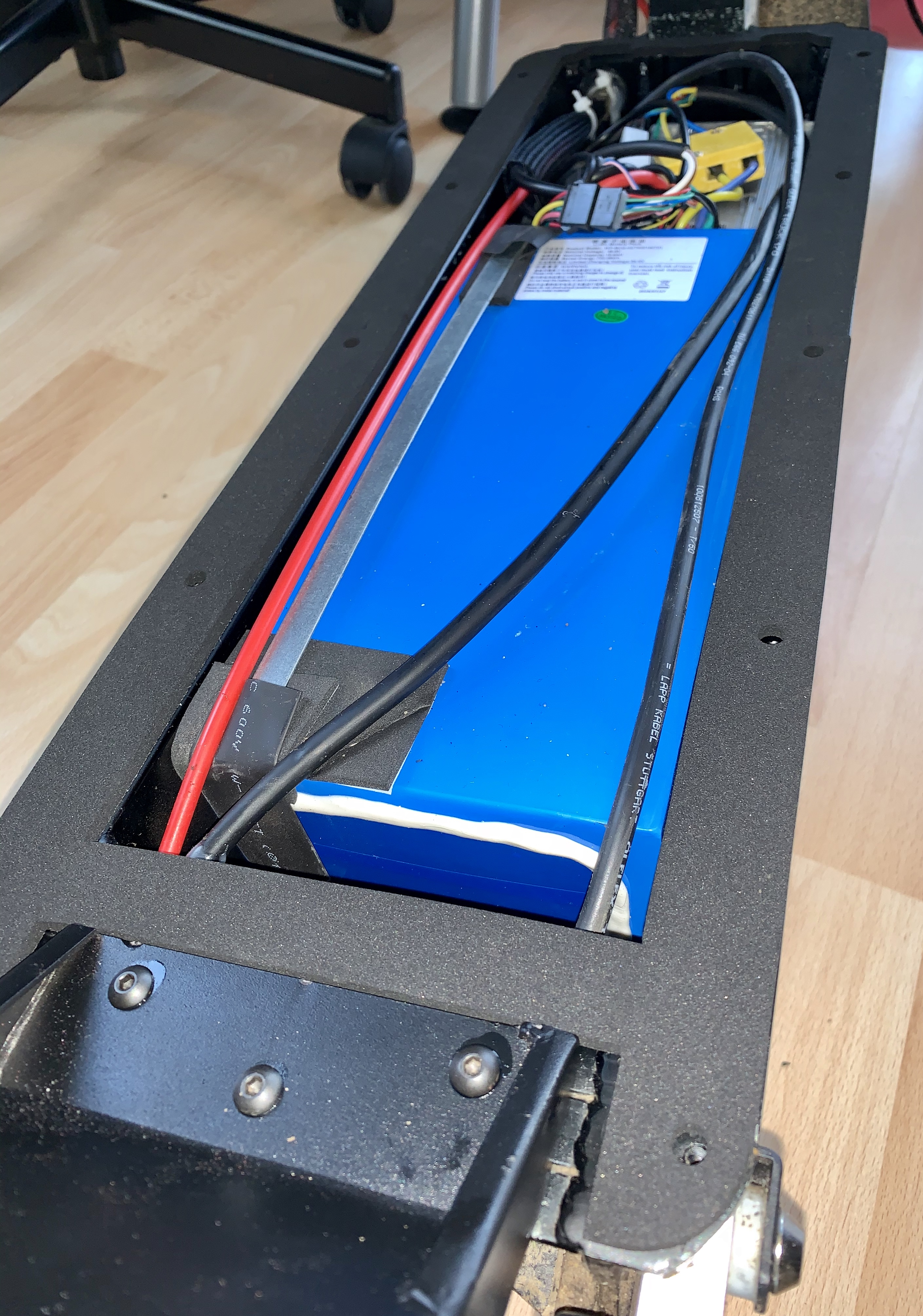 ich hatte nun das neue, verstärkte Schutzblech eingebaut und zunächst die mitgelieferten weißen Dichtungen verwendet. Diese sind beidseitig klebend, so dass man nur sehr schwer wieder an den Elektrokasten rankommt, weil alles übel verklebt ist. Auch müsste man wieder neu dichten danach, weil man zwangsläufig das weiße Tape zerreißt.