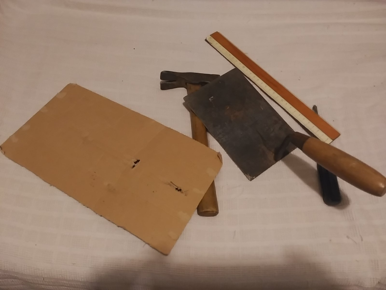 Ich habe die Kelle angesetzt, mit dem Hammer unter den Akku getrieben (geht bequem wenn alle anderen Akkus draussen sind) und dann den Kreuzschlitz unter die Kelle getrieben (als Keilersatz). So bekommt man die Klettverbindungen am Akkuboden gelöst und kann dann den Akku nach vorne rausziehen.
