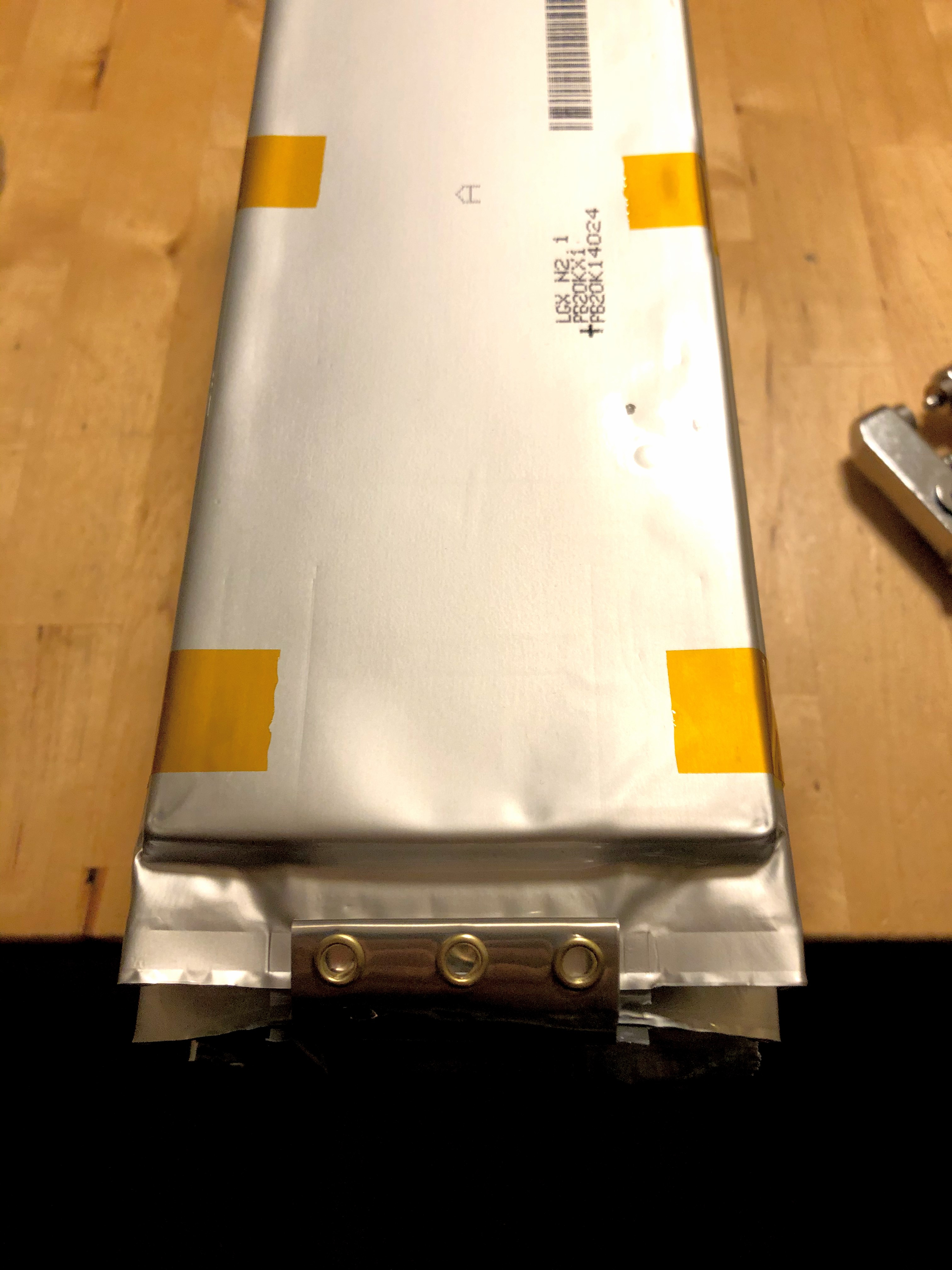 Super ist auch, dass jetzt die Energierückgewinnung beim Bremsen problemlos konfigurierbar und anwendbar ist, ohne dem Akku zu schaden. Die verwendeten Akkus stecken nämlich problemlos auch höhere Ladestöme (bis 60A!) weg. Das ist hier bei uns im bergischen Schwarzwald sehr sinnvoll und bedeutet dazu auch wesentlich weniger Bremsenverschleiß. Anbei ein paar Bilder vom Akkubau und Einbau. Eure bisherigen Beiträge haben mir bei der Umsetzung wesentlich geholfen, vielen Dank dafür!