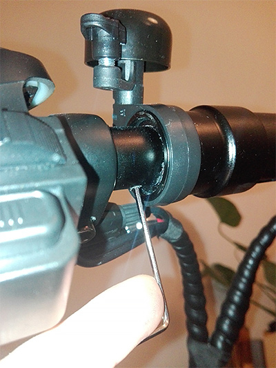 zum Thema Schrauben am Lenker: Bei mir wackelt der linke Griff etwas, es liegt aber nicht am Klappmechanismus, sondern muss irgendwo davor sein: Ist vielleicht unter dieser gefederten Hülse eine Schraube?