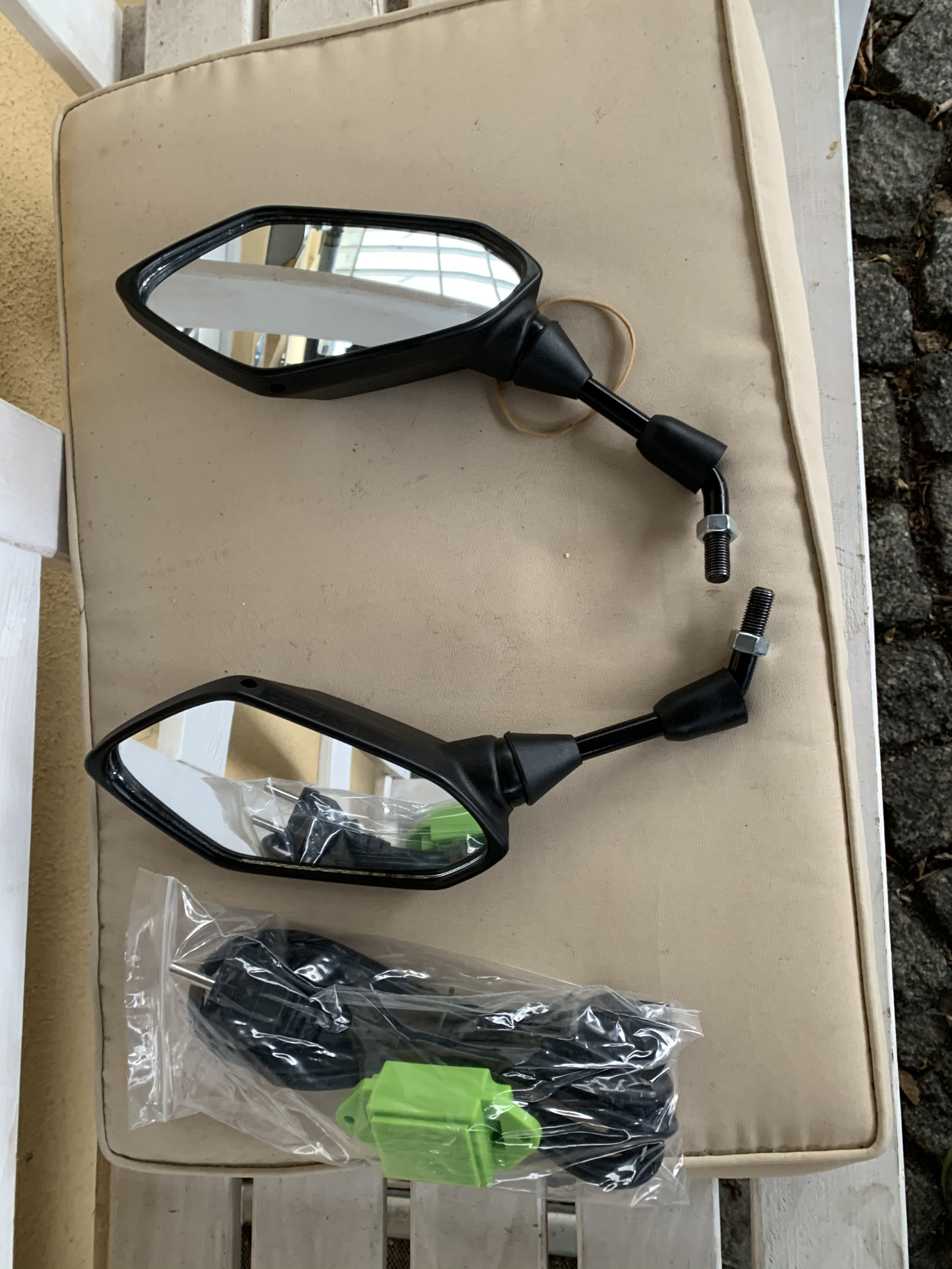 müsste passen, weil die Spiegel über die Lenker-enden raus-stehen. Der Roller wirkt schon richtig massiv, da fallen die Spiegel schon ein bisschen auf.