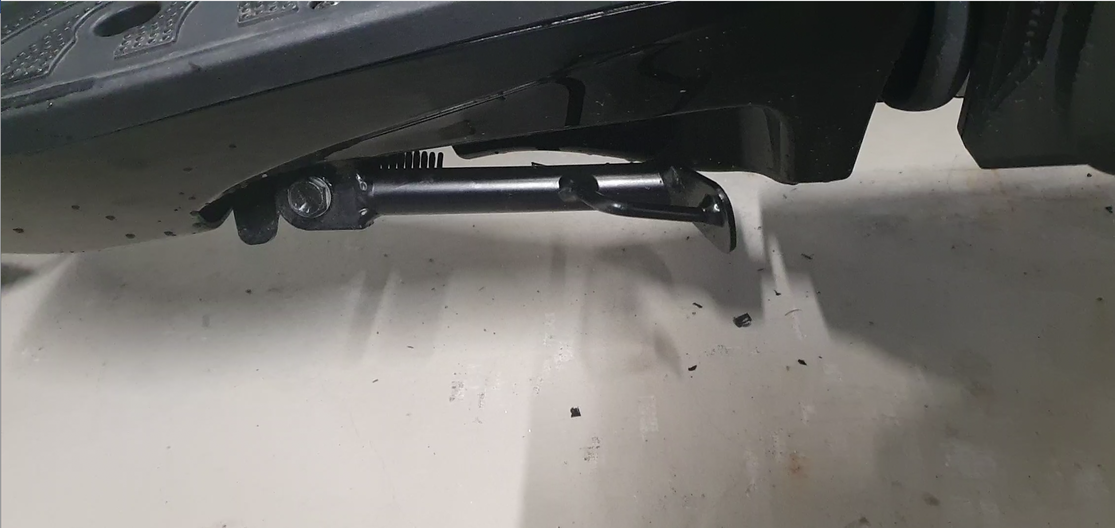 Da ist das Blech, das den Taster für den Seitenständer betätigt. Das muss etwas zurückgebogen werden, sonst wird der Taster der Anschlag.
