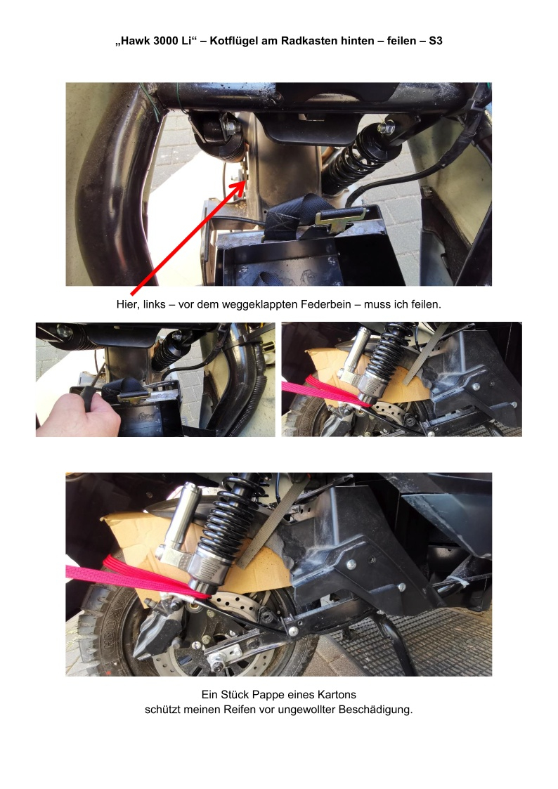 - mit grober Holzfeile (Halbrund-Feile) Material am Kotflügel (Schutzblech) abtragen