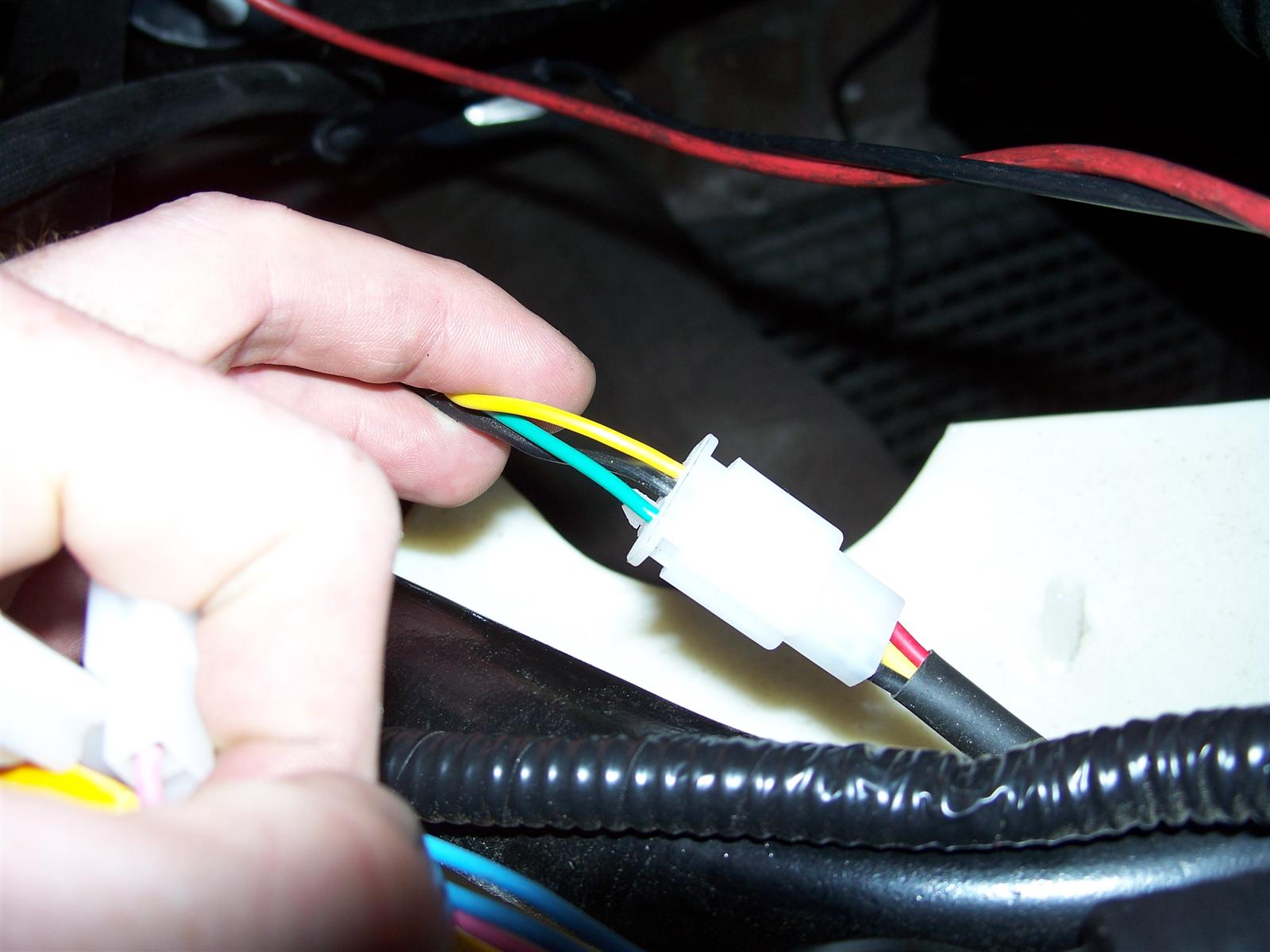 Der Stecker zum DC Wandler, Gelb 48V, Rot 12V, Schwarz Masse.