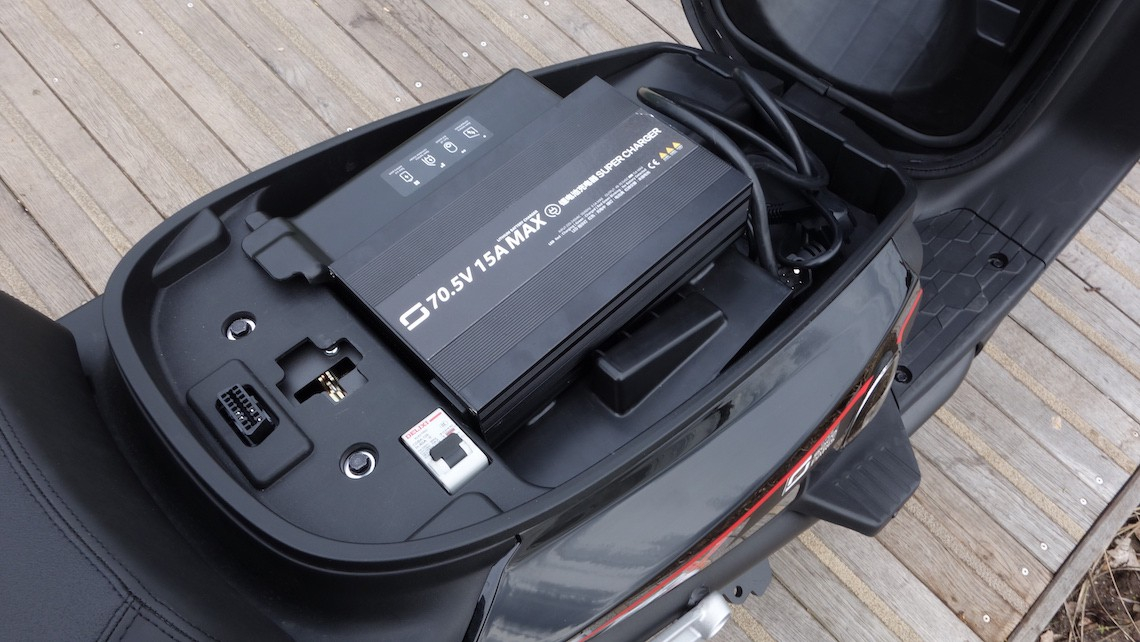 Was mir definitiv missfällt: Ich sehe nirgends eine Ladebuchse. Das ständige "Sitzbank-auf-Ausschalten-Umstecken" und retour ist echt unkomfortabel. Wie soll das mit zwei Akkus gehen? Nach der Hälfte der Zeit umstecken?