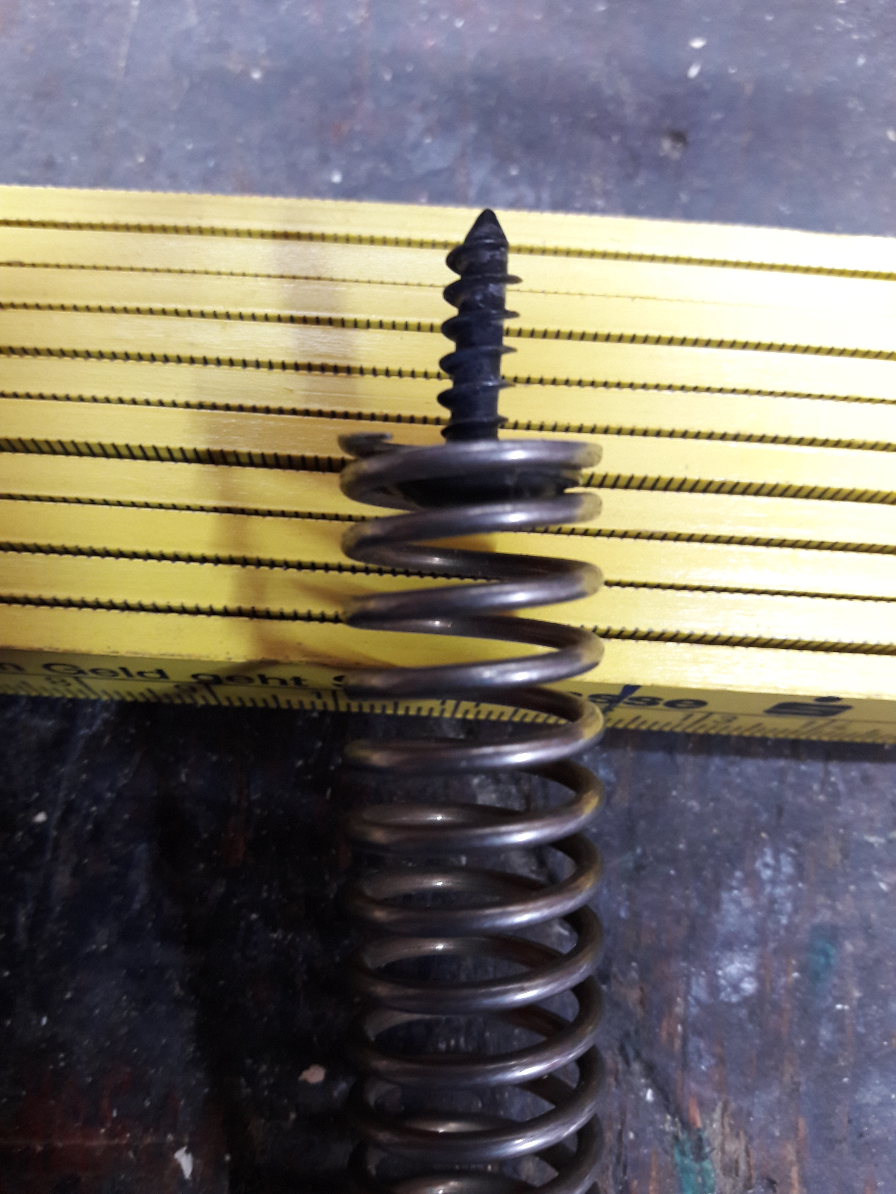 siehe Foto. Wird mit der “Bordeigenen” Schraube befestigt. Maße der Feder ca.11mm Außendurchmesser und ca.38mm Länge. Kann