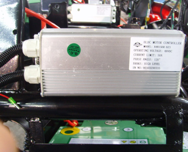 Er ist tatsächlich nur für 48V ausgelegt. Intern gibt es nur einen kleinen Steg mit 5 PIN Anschlüssen um Ihn zu programmieren. Das wurde aber so vom Werk her festgelegt. Meiner Meinung gibt es da keine Möglichkeit etwas zu ändern. Auf den verschiedenen Internetseiten aus China wird er aber auch bis zu 55km/h angegeben. Das kann man aber nur durch eine Erhöhung der Drehzahl erreichen, dafür sehe ich bei dem Teil aber auch keine Möglichkeit. Ein neuer Controller als E-Teil kostet nur ca. 200,- Euro. Ein vernünftiger Kelly kostet direkt ab 400,- Euro aufwärts. Das ist es mir nicht Wert. Das Thema wurde auch schon unter der Rubrik Tchibo Roller, Eco-Flash 2000 behandelt. Schade dass da kein kleiner Trimmpoti drin verbaut ist. Die Elektronischen Bauteile sehen aber alle sehr hochwertig aus.