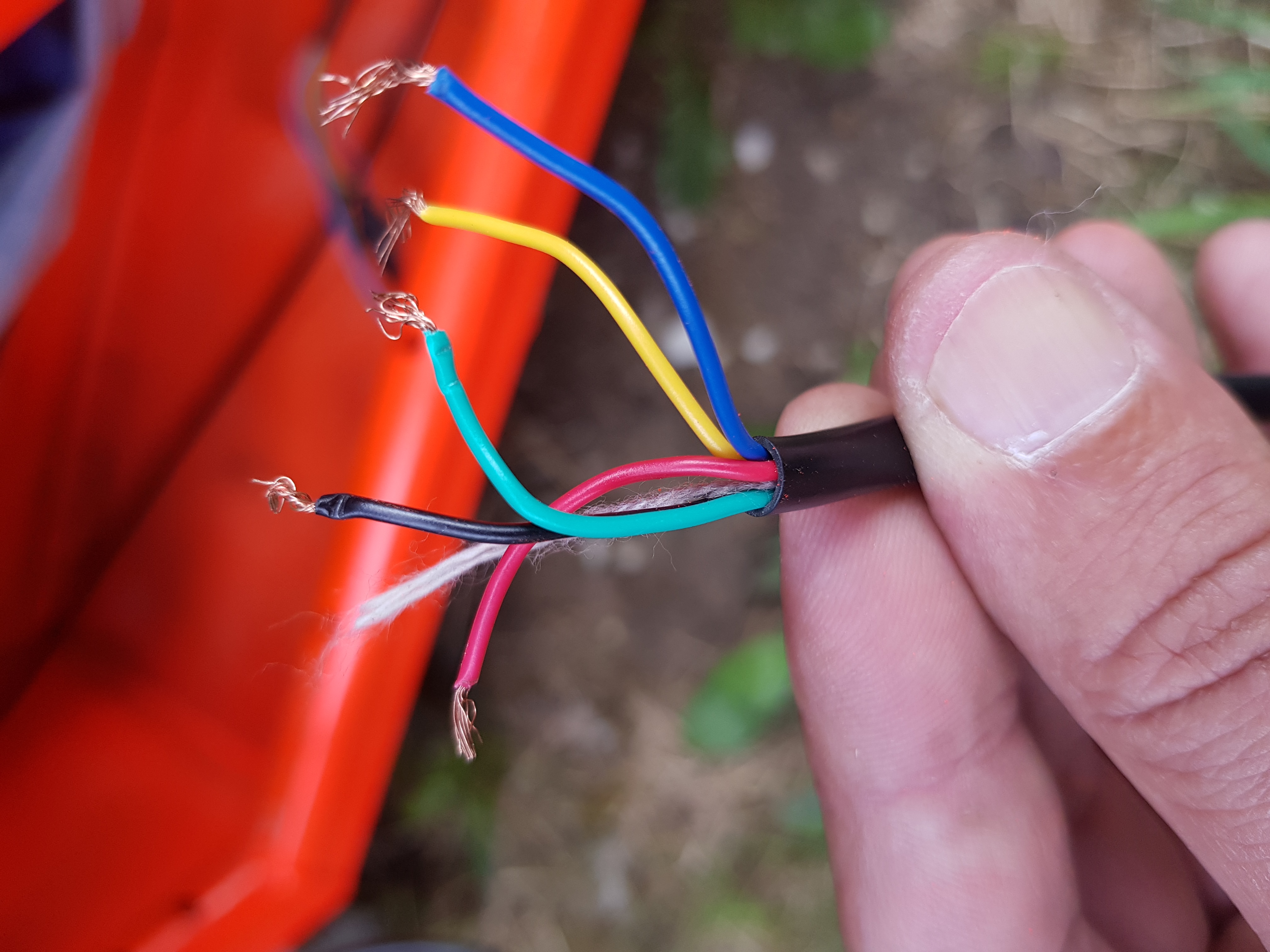 Die Kabel die vom Steuergerät nicht zu sehen sind, die kommen am Motor.