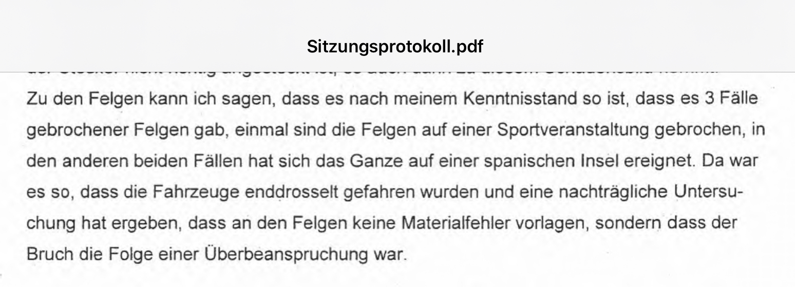 Das Thema „Felgenbruch“ wurde neulich vor Gericht in Kassel kurz angesprochen: