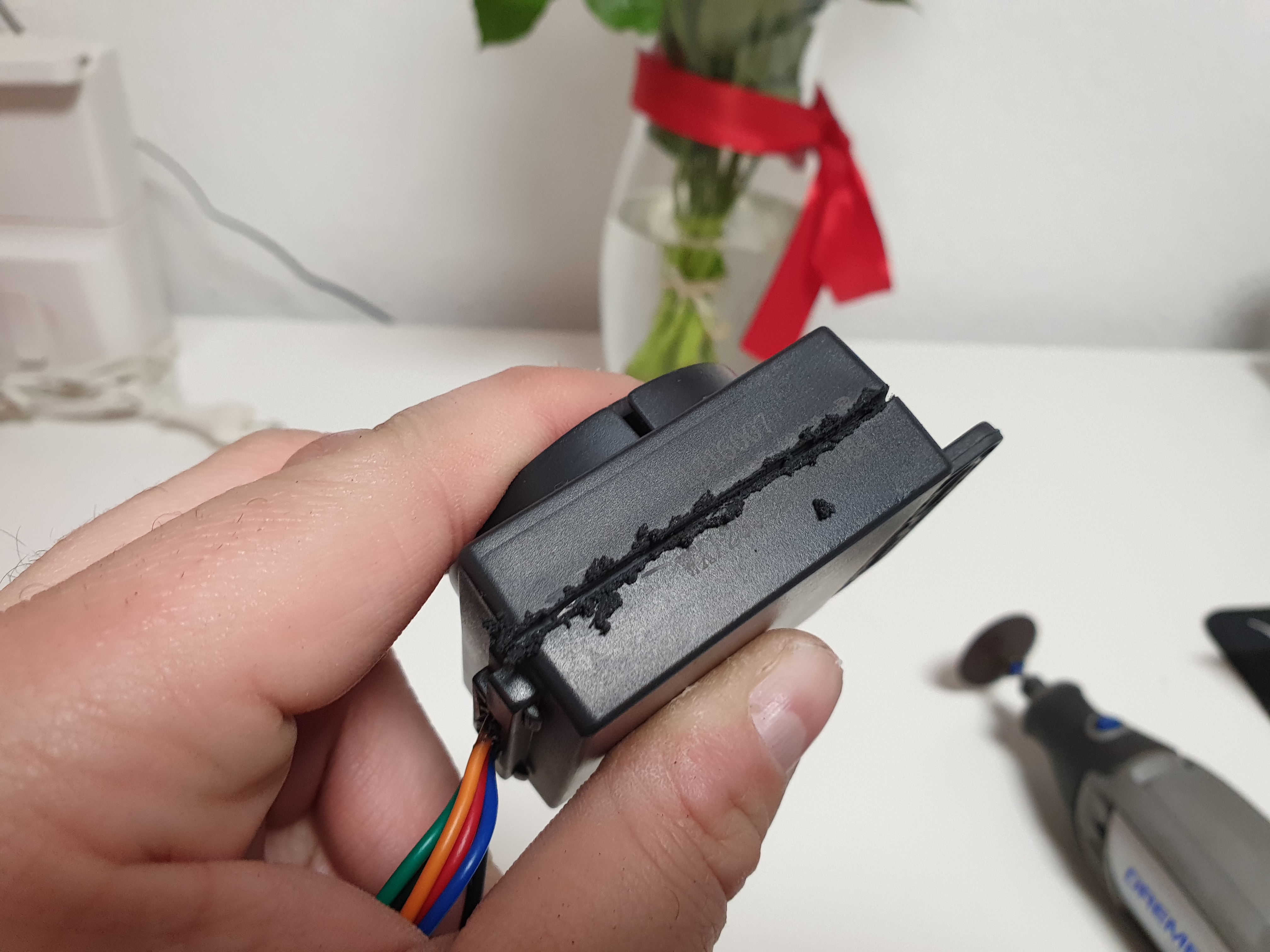 Wenn das alles erledigt ist, einfach das Gehäuse zuklappen und wieder zukleben. Ich habe für ein Isolierband entschieden. Bei Bedarf kann man die geschnittenen Kanten vorher noch entgraten.