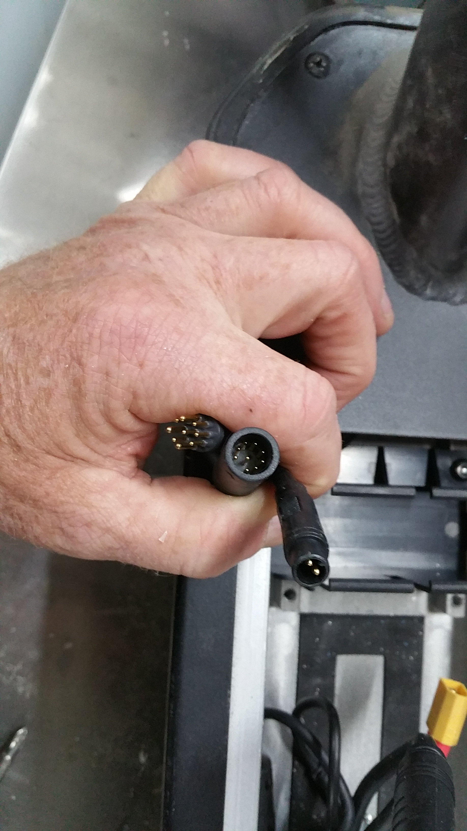 Ok.auf letztem Foto sind die Anschlüsse zu sehen die auf den Originalen Contoller gehen, an dem neuem Controller sind natürlich andere Anschlüsse, also müssten die Stecker abgeschnitten werden und mit dem Neuen verbunden werden, da ich aber die Belegung nicht kenne, wird das für mich unmöglich sein.