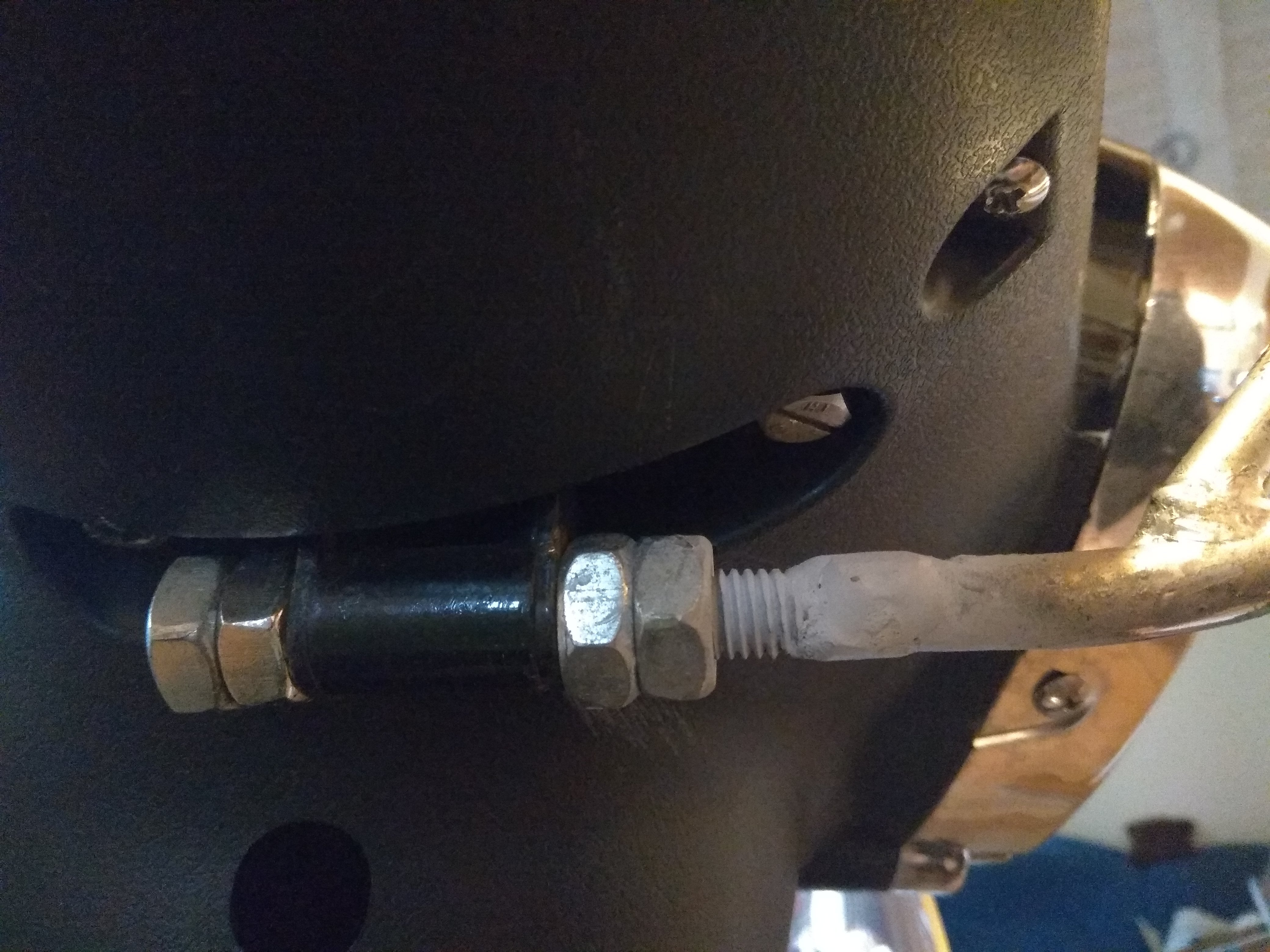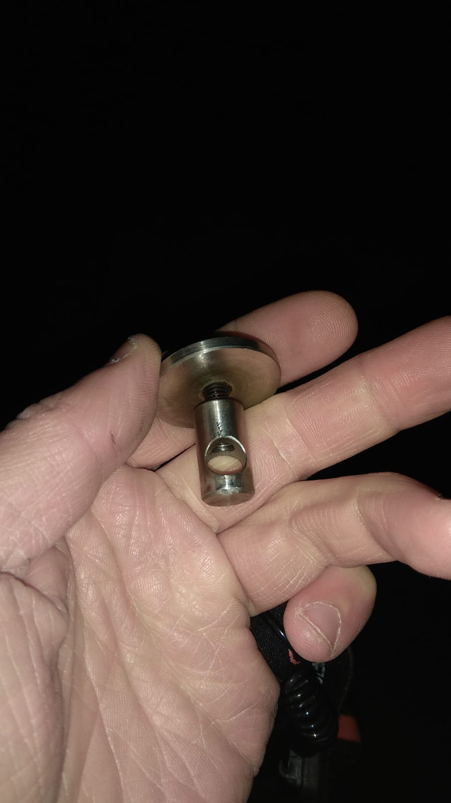 Als mein Gestänge vor einiger Zeit zum zweiten Mal während der Fahrt gebrochen ist, ist das rechte Gestänge dann nach unten gerutscht und ich habe dieses Befestigungsteil verloren und musste es neu drehen lassen. Genau das gleiche ist dieses Mal erneut passiert, aber zum Glück habe ich das Teil beim Zurücklaufen der letzten 100m wiedergefunden.