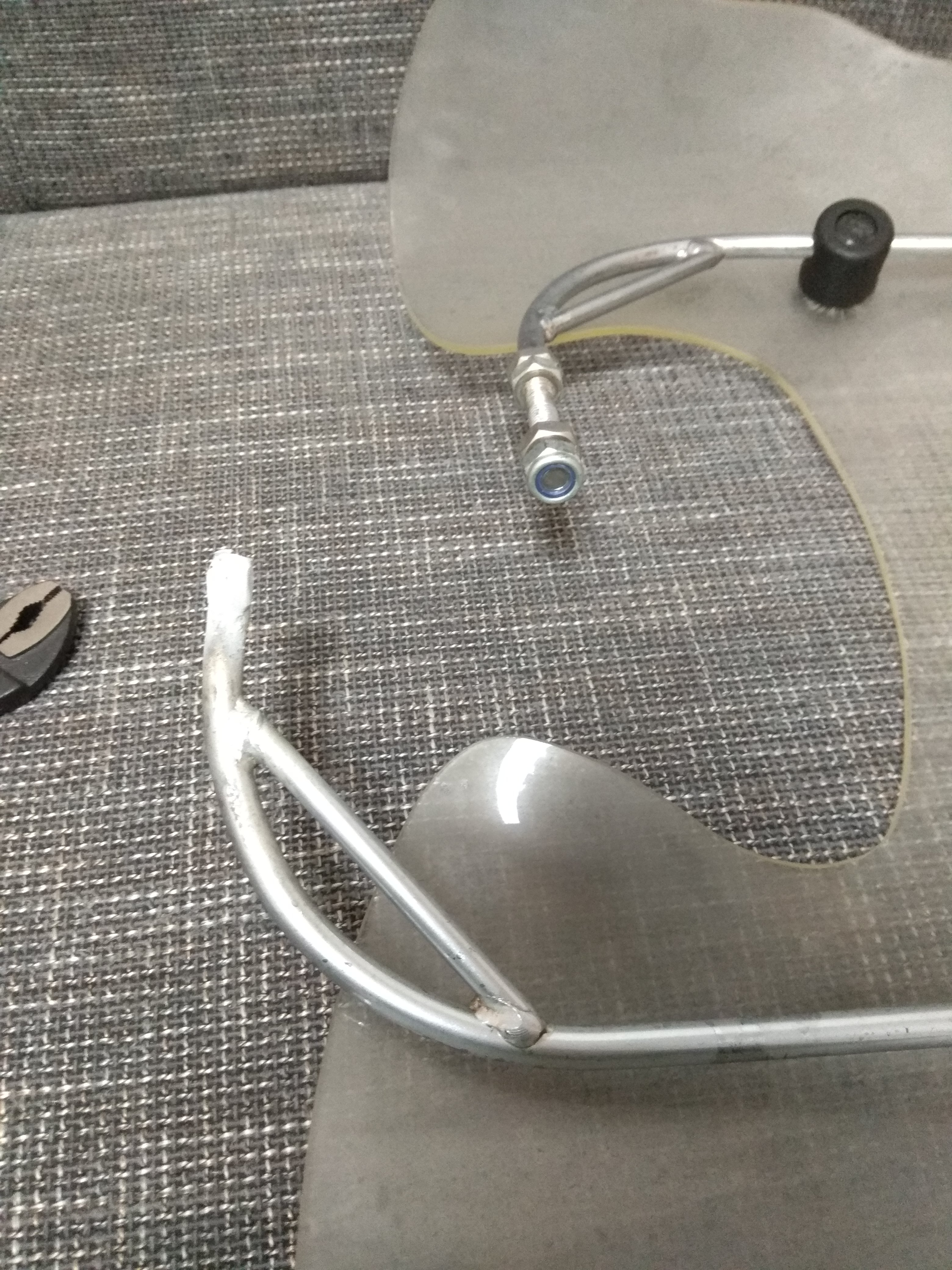 • Die beiden Gestänge mit einem Verbindungsstab zusammenschweißen, sodass sie verbunden sind und sich weniger verwinden können. Ich glaube aber nicht, dass das viel hilft, das Windschild wird nur noch schwerer.