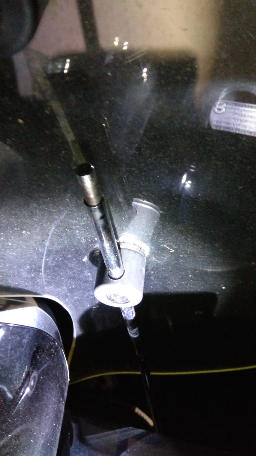 • Irgendwie einen dritte Befestigungspunkt für das Windschild am Roller und Windschild anbringen. Leider ist nicht wirklich Platz am Lenker wegen Tacho + Scheinwerfer.