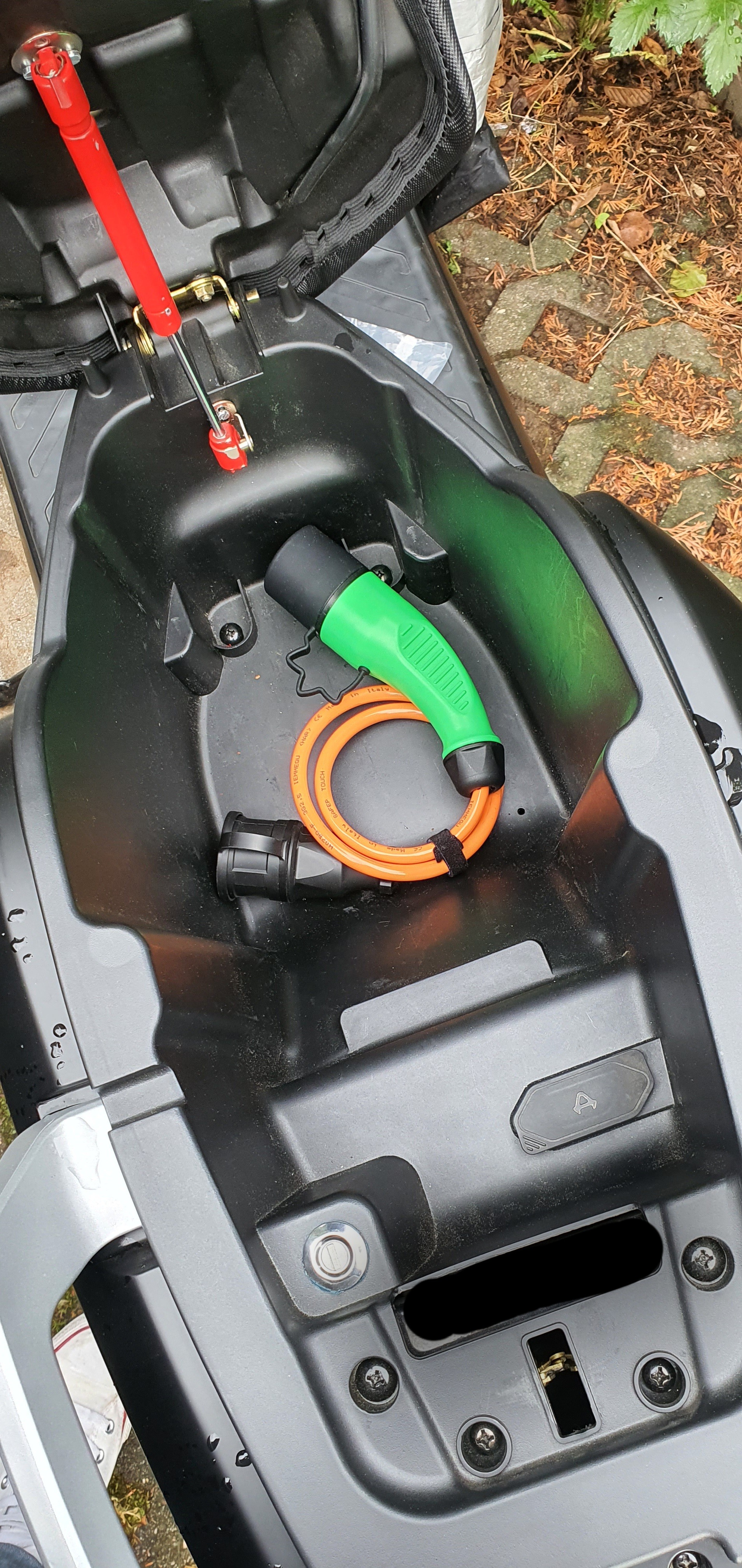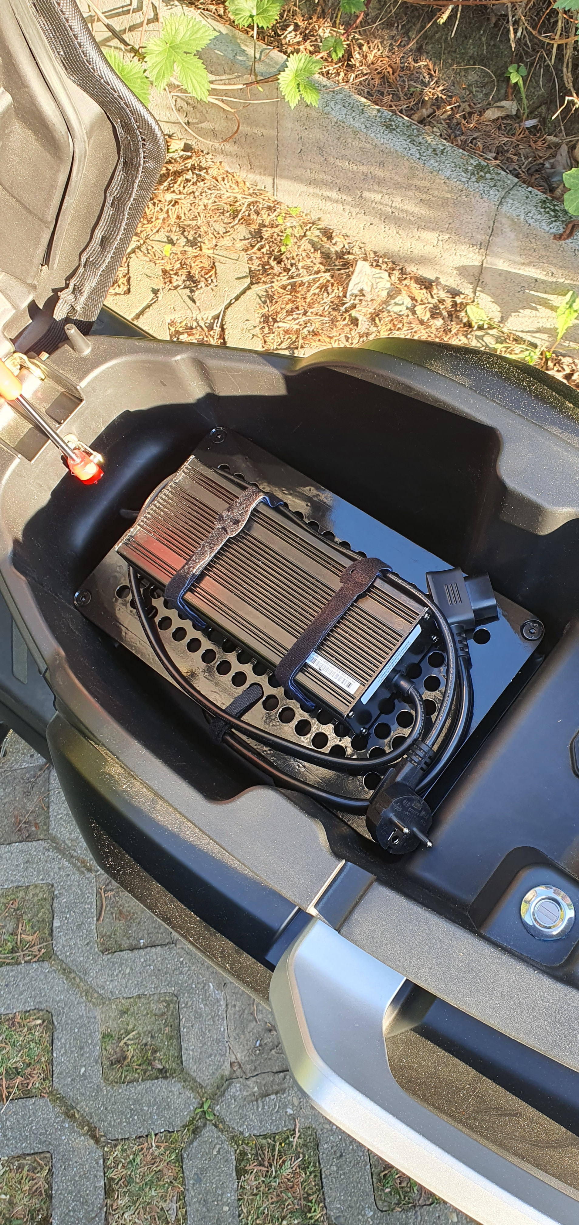 Ladegerät im Roller eingebaut