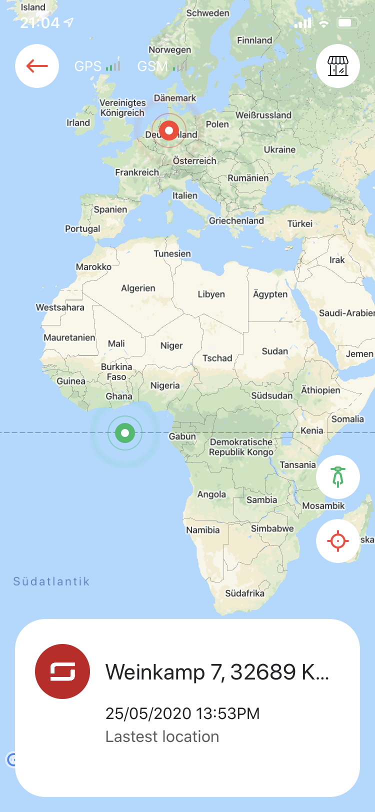 Mein Roller steht laut App im Meer, unterhalb von Ghana...