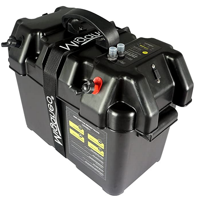 Lösung Bleivlies-Akku 12V ab 20Ah oder besser noch ein entsprechender LiPo / LiFePO4-Akku. Die Teile werden für um die 150€ herum beworben, nach oben keine Grenzen. Für rausschippern zur Angelstelle und zurück ans Ufer dürfte das allemal ausreichen.