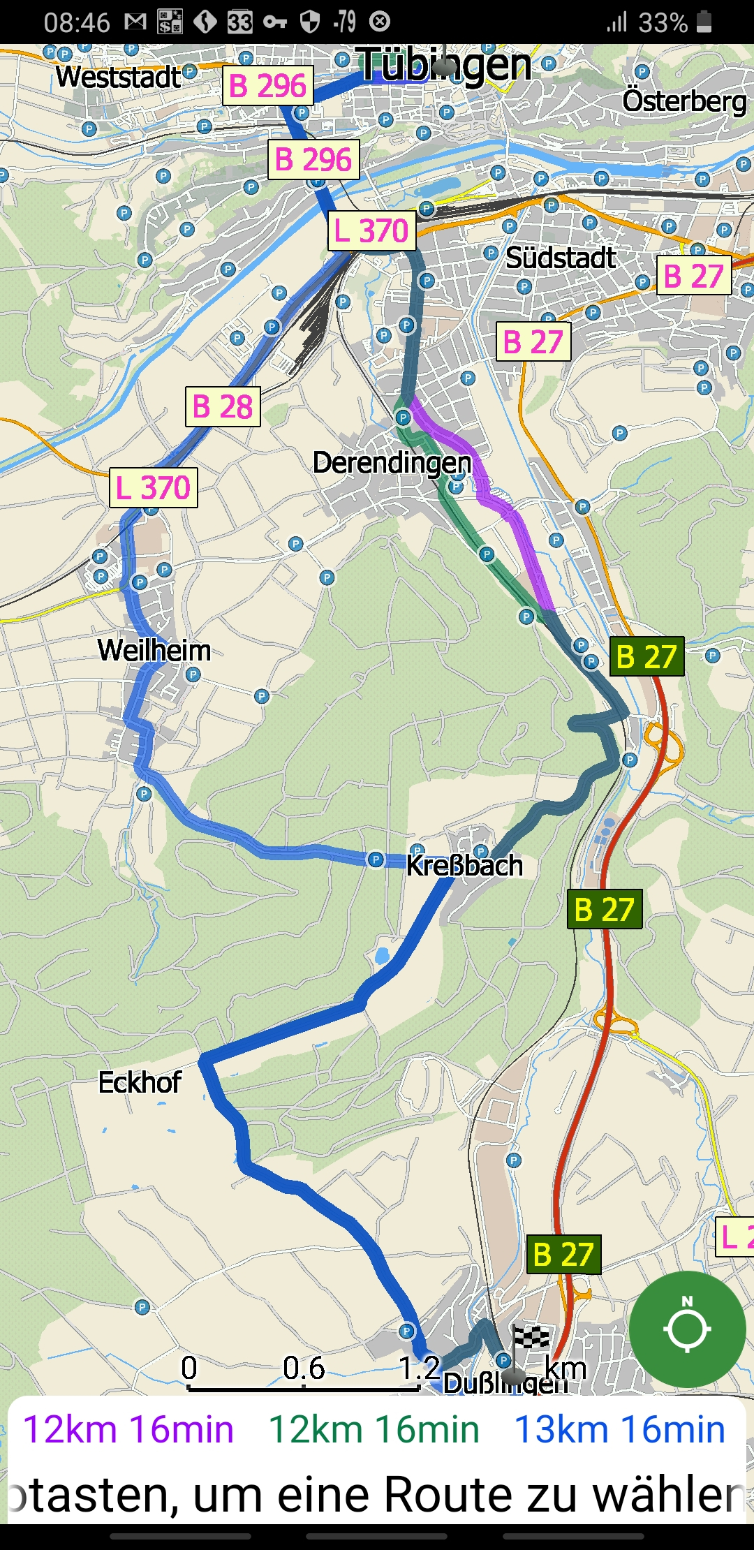 Zum meinem Problem: Auch wenn ich alles wegließ, ausser nebenstraßen und unbefestigte Wege: es fand den kurzen Weg in die STEINIG nicht, nein, es routete sogar wieder auf die B27, obwohl ich dies ja ausgeschlossen habe....