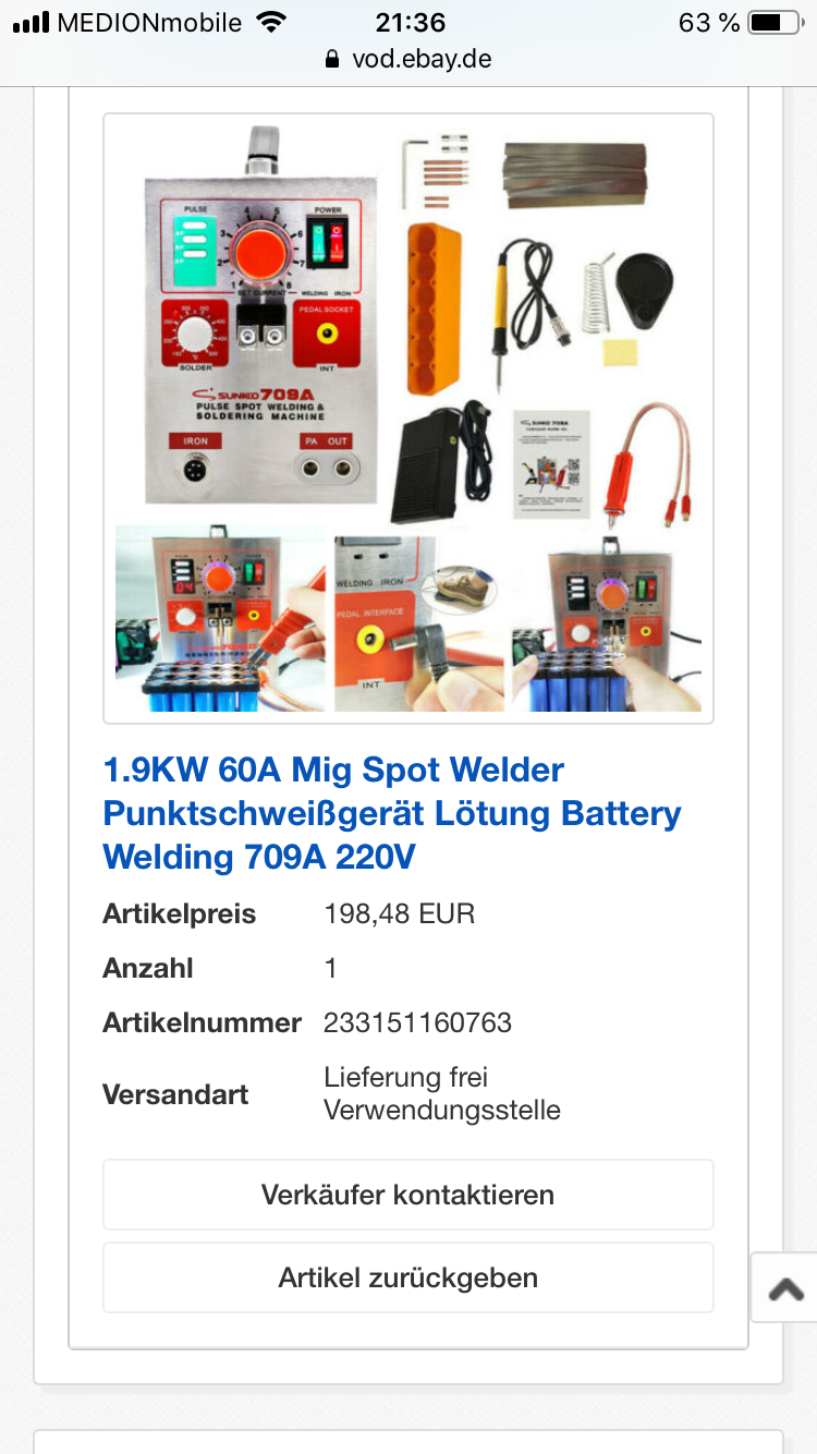 Das hört sich schon mal gut anTommmi hat geschrieben: Mi 10. Jun 2020, 18:22 Also, in der Maschine passen ja glaube ich 2 Akkus.