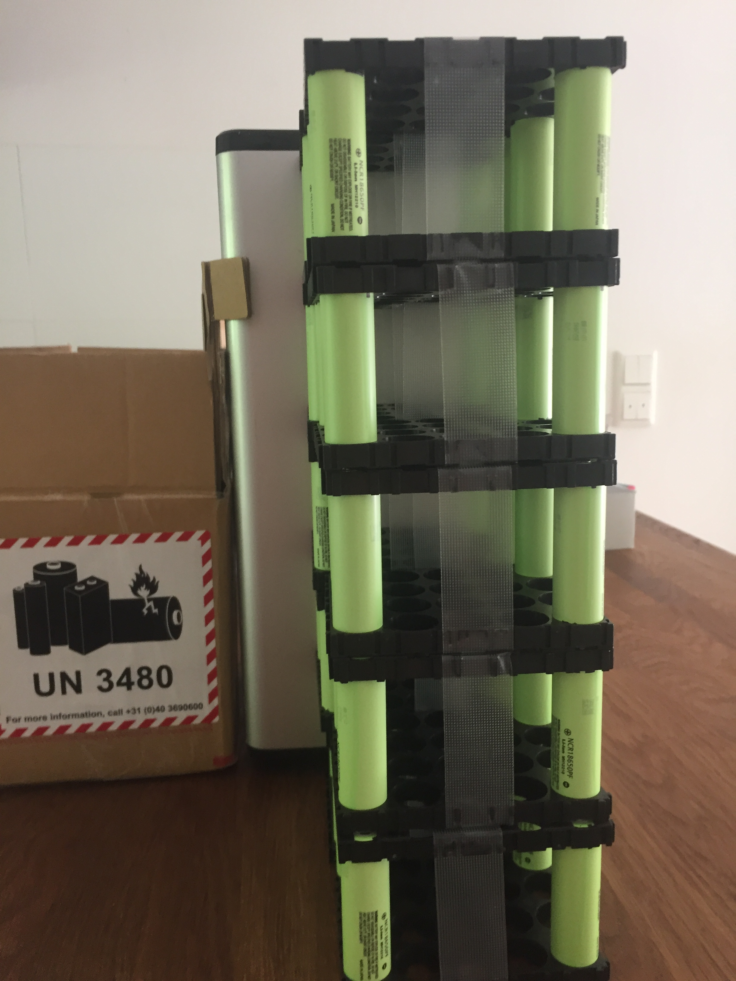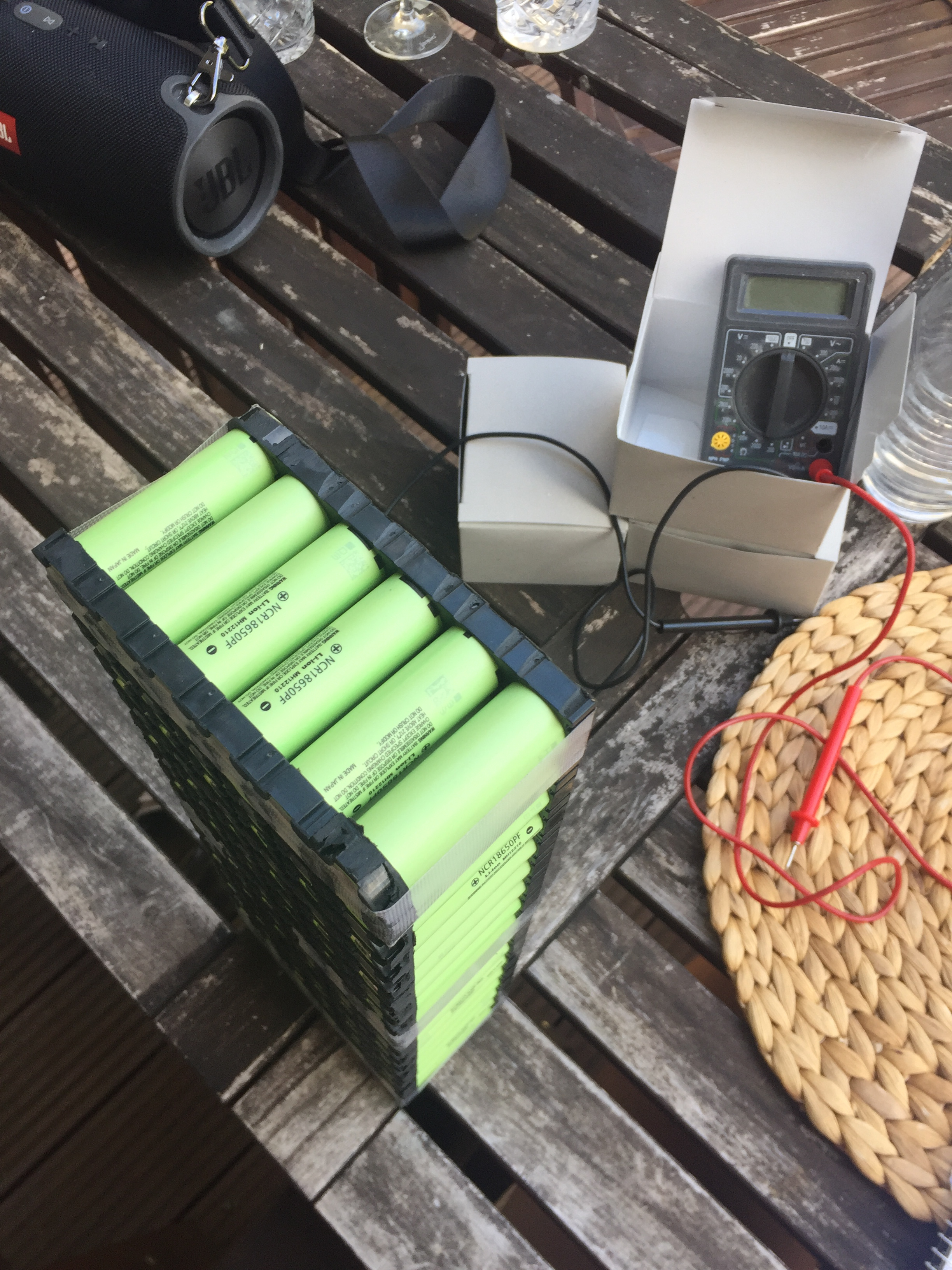Momentan sieht es nach 17s 11p aus (61,2 Volt / 31,9Ah)