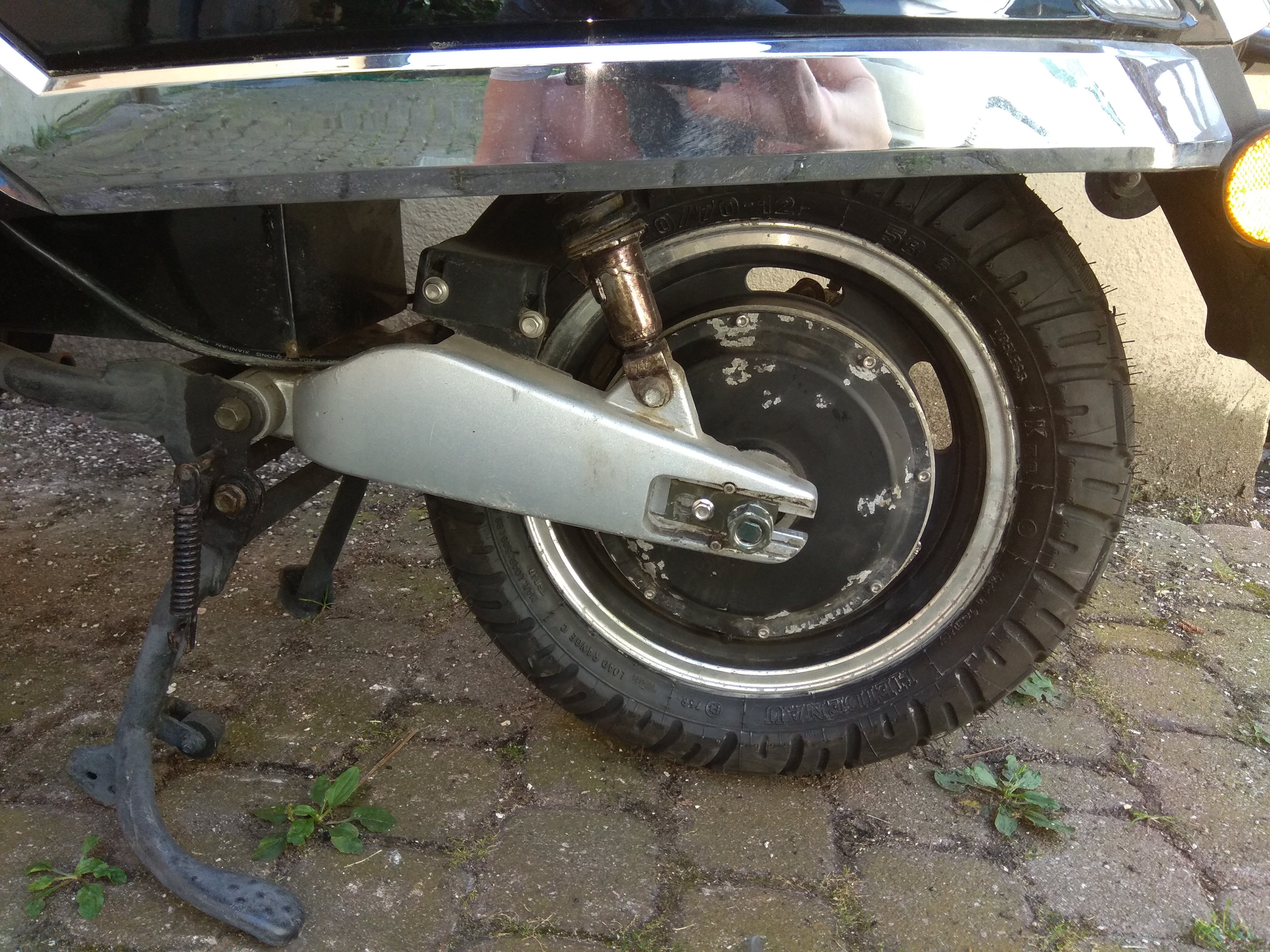 - Das Reifenaufziehen ging problemlos auch mit der Maschine. Ich habe jetzt hinten einen Heidenau 120/70 - 12 RF 58P Snowtex K58 mod. drauf.
