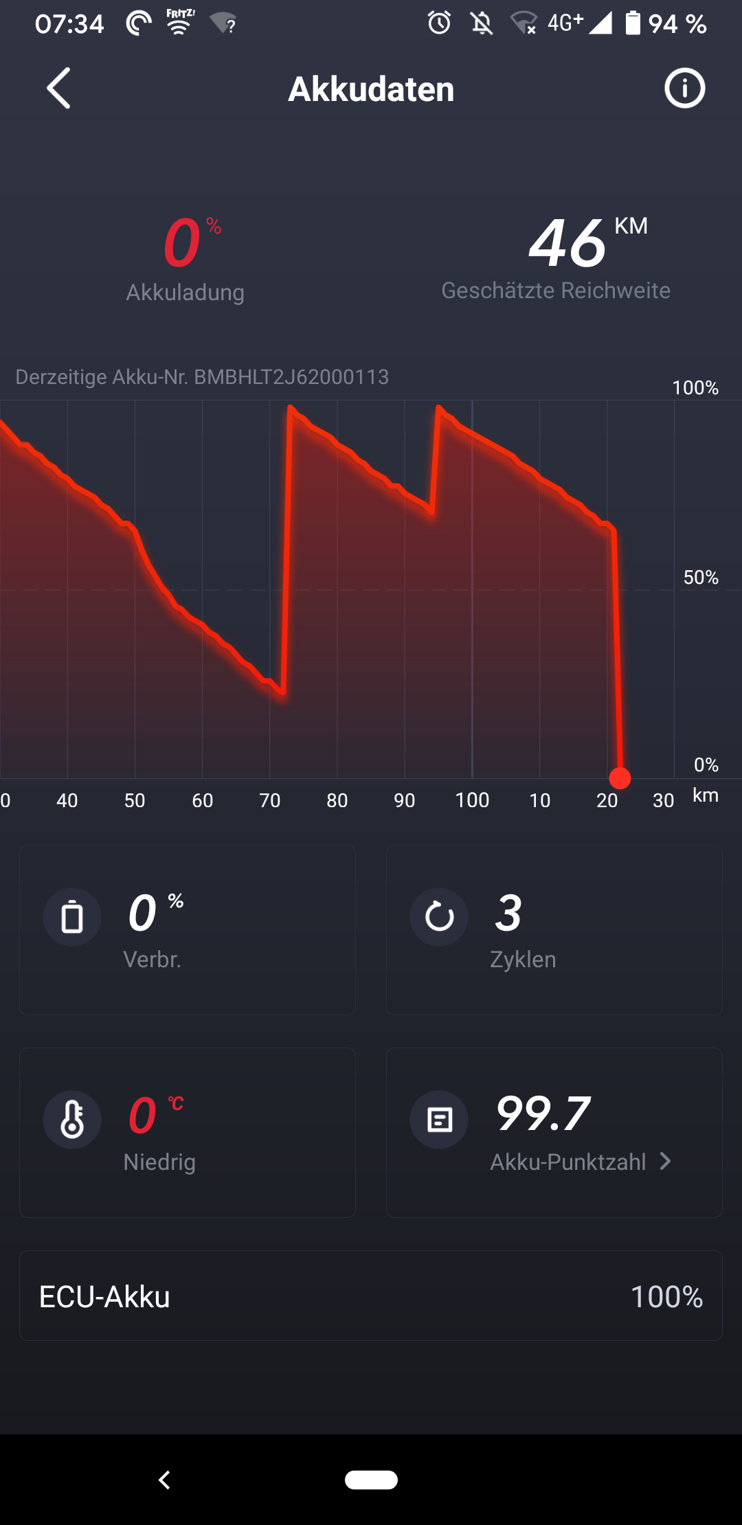 Wenn ich ihn abstelle, dauert es meist 1-3 Stunden bis er wieder die Verbindung zum Akku verliert.