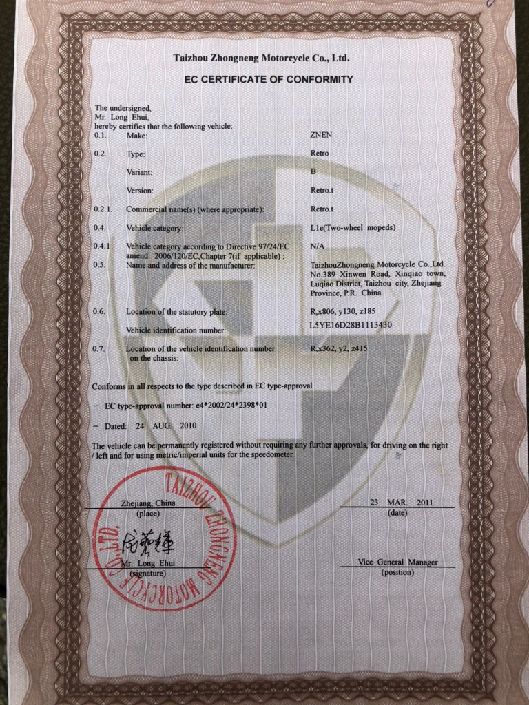 der Marke taizhou ZNEN Retro Baujahr 2011 3300 Kilometer .