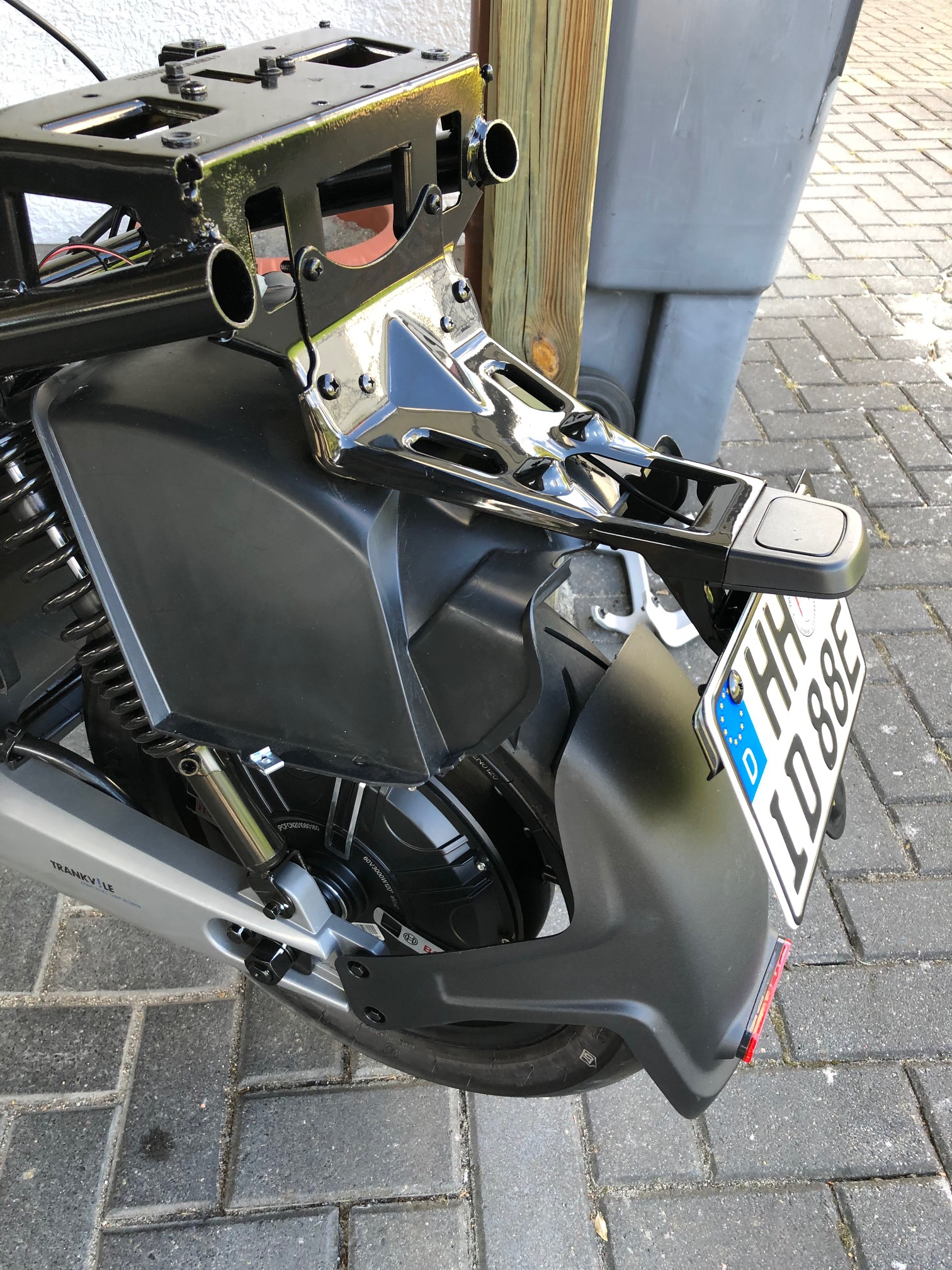 Die hintere Radabdeckung ist auf deinen Bild mit zwei übernanderliegenden Schrauben nahe der Radnabe fest verschraubt. Das sollte eigentlich reichen oder habe ich was übersehen?Venturahh hat geschrieben: So 26. Jul 2020, 13:06 Fehlt nur noch eine Platte die Rahmen und Spritzschutz des Hinterrades fixiert