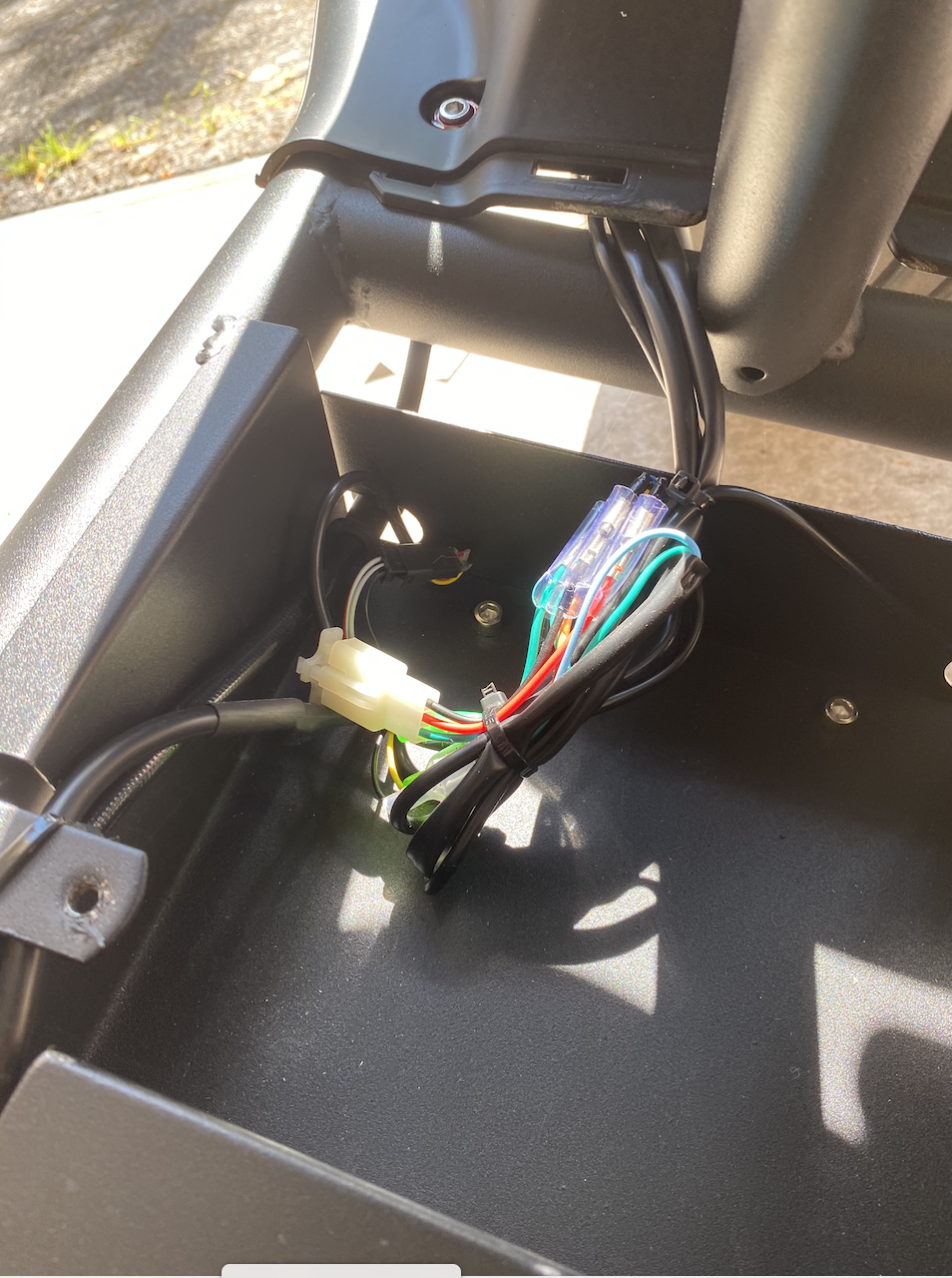 Du hast zwei Möglichkeiten um die Spannung abzugreifen. Einmal wenn Du die Tanksimulation aufschraubst Bild 1. Was aber zu Verwirrung führen könnte. oder einfach den Hinteren Bereich vom Akkukasten Bild 2. Dort kannst du einfach die Blinker abgreifen und die Summer zwischen bauen.Ist auch noch genug Platz für Die Signalgeber.