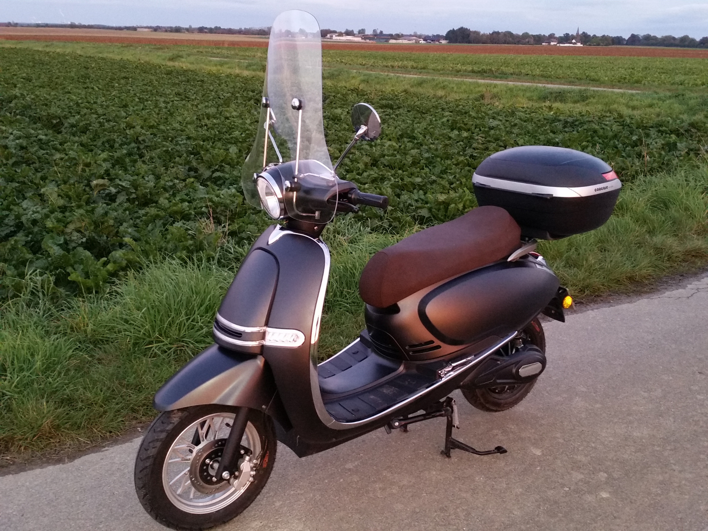 Mein Niu hat das offizielle Niu-Windschild - ich kann mich noch an Zeiten erinnern, da hieß es, dass man über ein Windschild drüberschauen können muss. Nun hat das Teil tatsächlich eine ABE, obwohl ich da beim besten Willen nie drüberschauen kann. Liegt wohl an Europa.