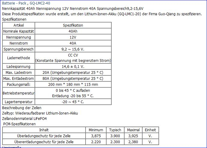 allerdings die alte Version, die nur 3.300 mAh Kapazität hatte. Ob das jetzt die originalen Kreidler-Pakete der späten Baujahre sind, oder etwas Nachgerüstetes kann ich nicht sagen. Jedenfalls sind die Werte zu Ladeschluss und BMS-Schutz der von dir genannten Tabelle die von 4s LiFePO4-Blöcken und in der Tabelle steht auch LiFePO4. Da die Spannungslage (für vollgeladen und schlecht ballanciert) OK scheint, werden wohl auch die meisten / oder auch alle der hochwertigen Zellen noch leben.