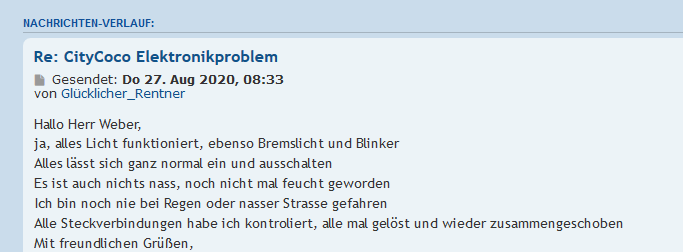 Auf meine zweite PN kam dann auch ein paar Tage nichts. Dann hatte ich Kontakt über Ebay aufgenommen und seit dem Tag lief die Kommunikation per WhatApp ohne Probleme.