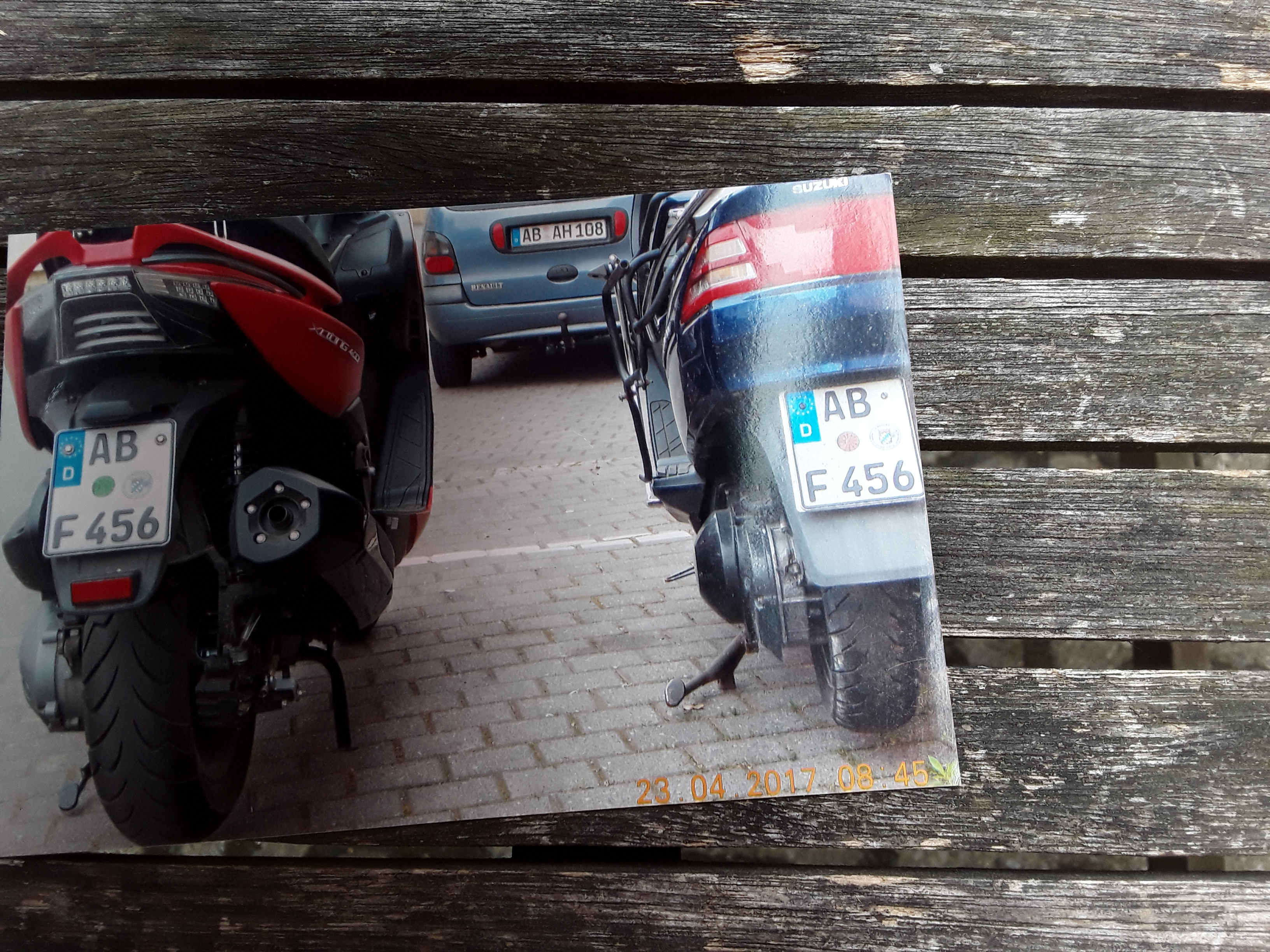 Bin dann den Standort des genannten Rollers angefahren. Kennzeichen war doppelt von der Zulassungstelle ausgegeben. Wollte keiner glauben, weder Polizei noch Zulassungsbehörde.Hab das dann fotografiert und so. Hat Wochen gedauert bis das Verfahren eingestellt wurde. War froh dass nur TÜV überzogen war. Wenn Rotlichtverstoss, Fahrerflucht, Geschwindigkeitsvergehen oder so, hätte richtig Ärger gegeben.