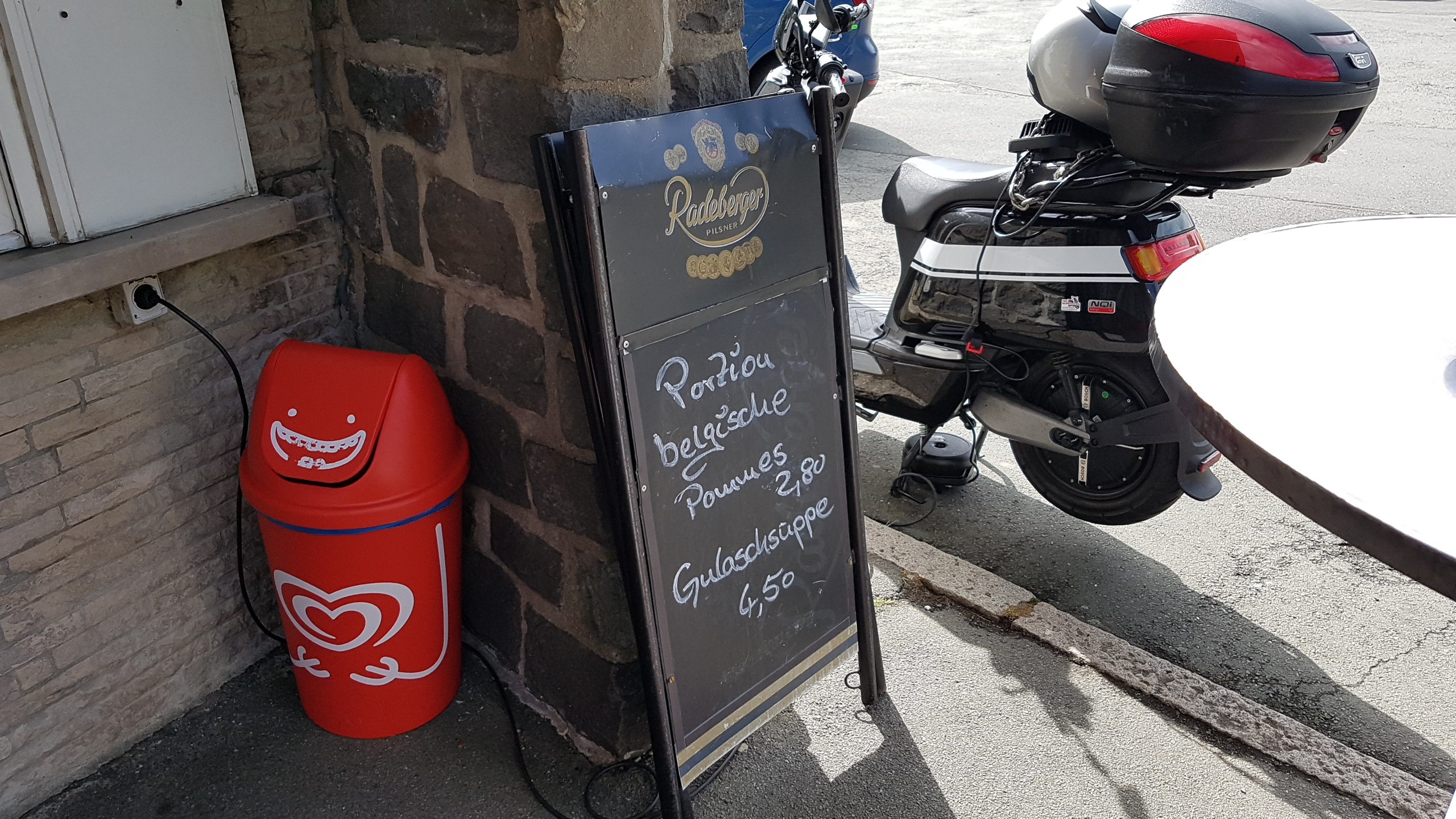 Nachdem der Roller angeklemmt war bin ich ertsmal rein und hab gefrühstückt.