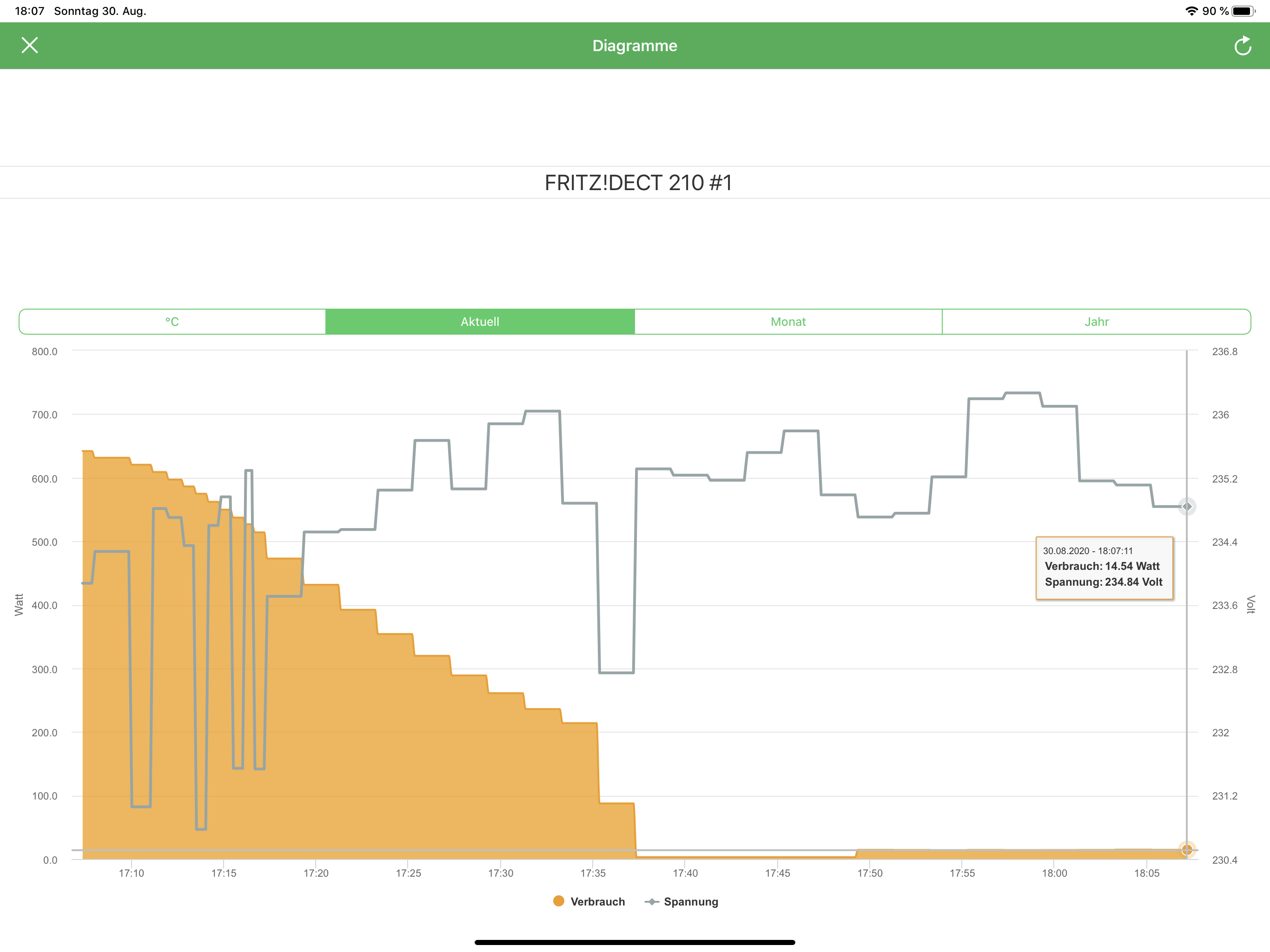 Auch heute früh, das heißt über Nacht, sind die 14W in den Roller gegangen. Und zwar konstant, ohne Unterbrechung.