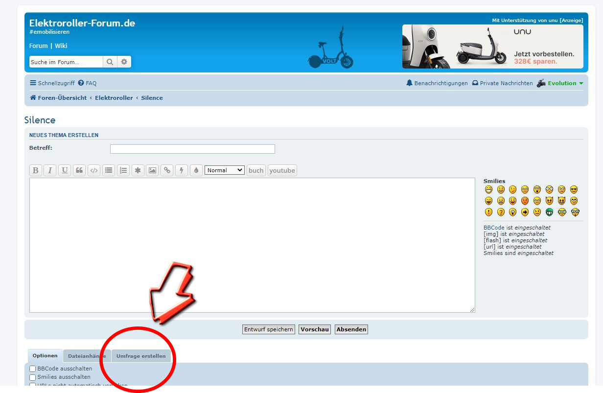 Ich wurde gefragt wie man eine Umfrage hier im Forum erstellt. Das ist ganz einfach: