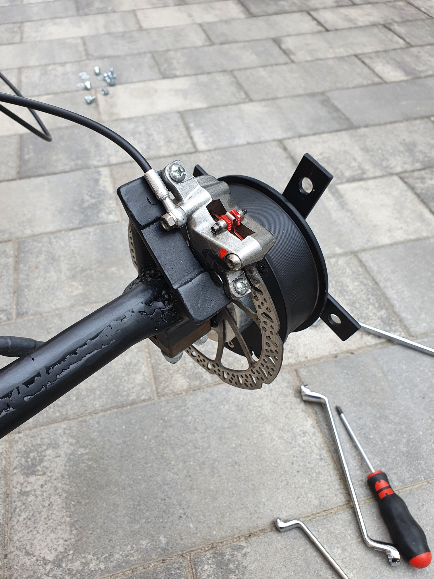 Heute gleich Probefahrt gemacht und funktioniert super mit der Fahrradbremse.