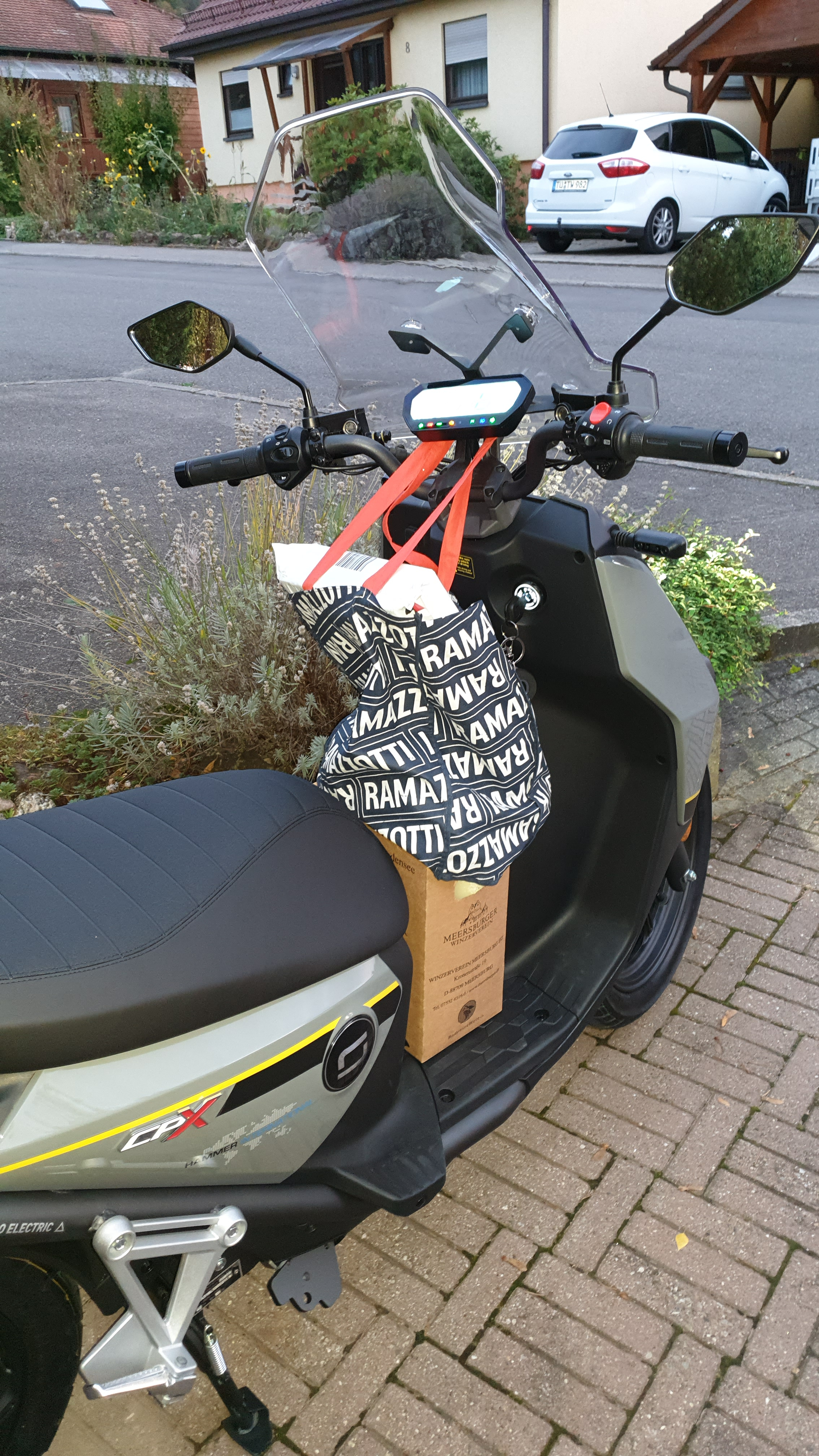 Hallo. Ich sollte die Papier auch schon haben, sind aber noch nicht da. Bin heute trotzdem einfach mal ohne Ankündigung zum Händler gefahren und hab mir den Roller angeschaut. Sieht gut aus. Sitzt sich auch gut, wenngleich die Fußbank eigentlich zu kurz für meine großen Füße ist. Habe beide Akkus mal rausgenommen und aus Spaß ein paar Runden lang hin und her getragen, ging. Auch mal ein paar Meter gerollt, Beschleunigung ist beim Anfahren sehr gedrosselt, selbst auf Stufe 3. War etwas ungewöhnlich. Aber kommt man bestimmt mit klar.HerbyK hat geschrieben: Mi 7. Okt 2020, 00:51 Hallo, AlecTron - die woche hat begonnen und ich habe gestern erfahren, daß meine Papers erst heute in den Versand gehen... war zu viel los durch den PRESale - oder es war denen wohl wichtig, daß die Fz wie versprochen rausgehen....