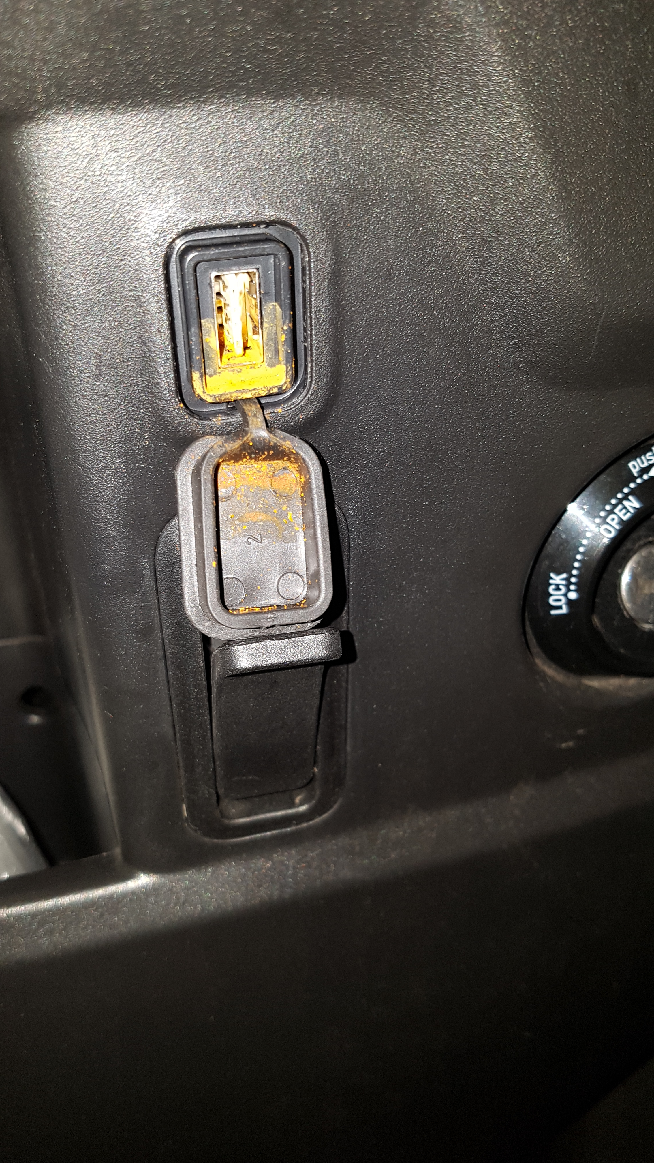 ich wollte heute zum ersten Mal mein Smartphone über den USB Anschluss laden, habe die Kappe abgemacht und dann festgestellt, dass dieser verrostet ist. :shock: