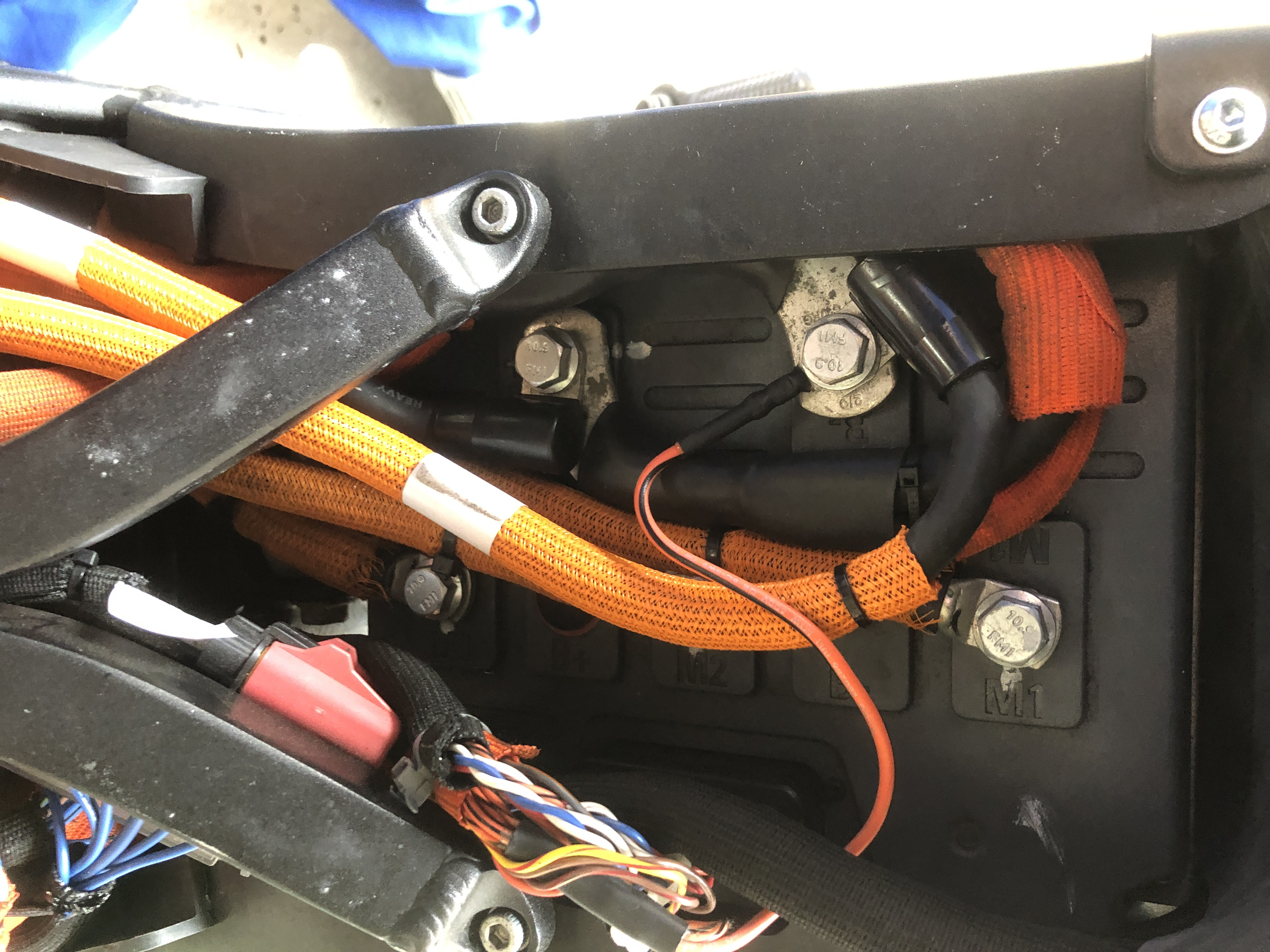 - Der Controller ist in meiner Zero anders herum eingebaut, sprich Datenstecker und Motorphasen sind links (im Bild unten), Batterieanschlüsse rechts (im Bild oben). Orignal sollte das anders herum sein. Da musste ich etwas kreativ werden im Kabelrouting rechts im Bild - schön geht anders... Doch die Inbetriebnahme mit Schlüsseldreh war tatsächlich problemlos. ZF7.2 war auf 92%, der ZF3.3 auf 63%. Beim Einschalten hat daher nur der große ZF7.2 eingeschaltet, und es gab wie erwartet rote Wanrdreicks-Blinkzeichen 2-5 und den Fehler 23 "Modulvarianz zu hoch", doch gefahren ist die Zero trotzdem