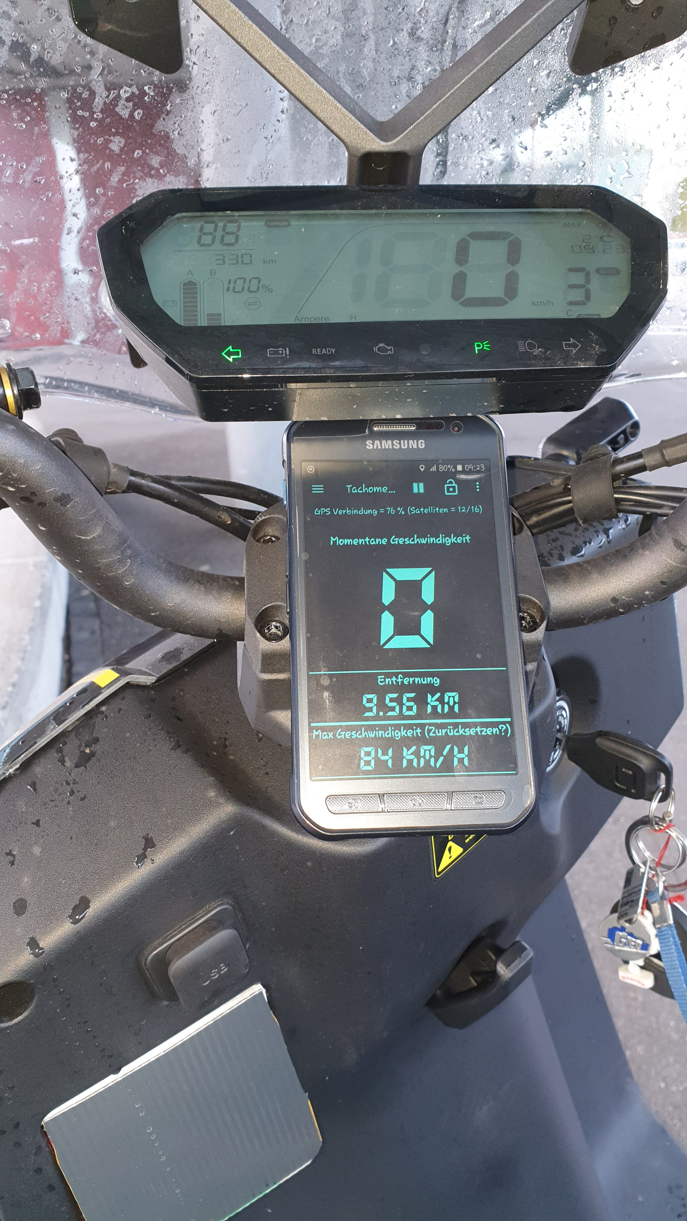 Heute konnte ich GPS Messungen mit 2 Programmen machen. Bei leichter Bergabfahrt zeigte sie 89km/h bei 2*C an, die Apps zeigten mir dann eine High-Speed von 83 bzw 84. Bei anderer Bergabfahrt zeigte sie 92, App mit GPS zeigte 88km/h