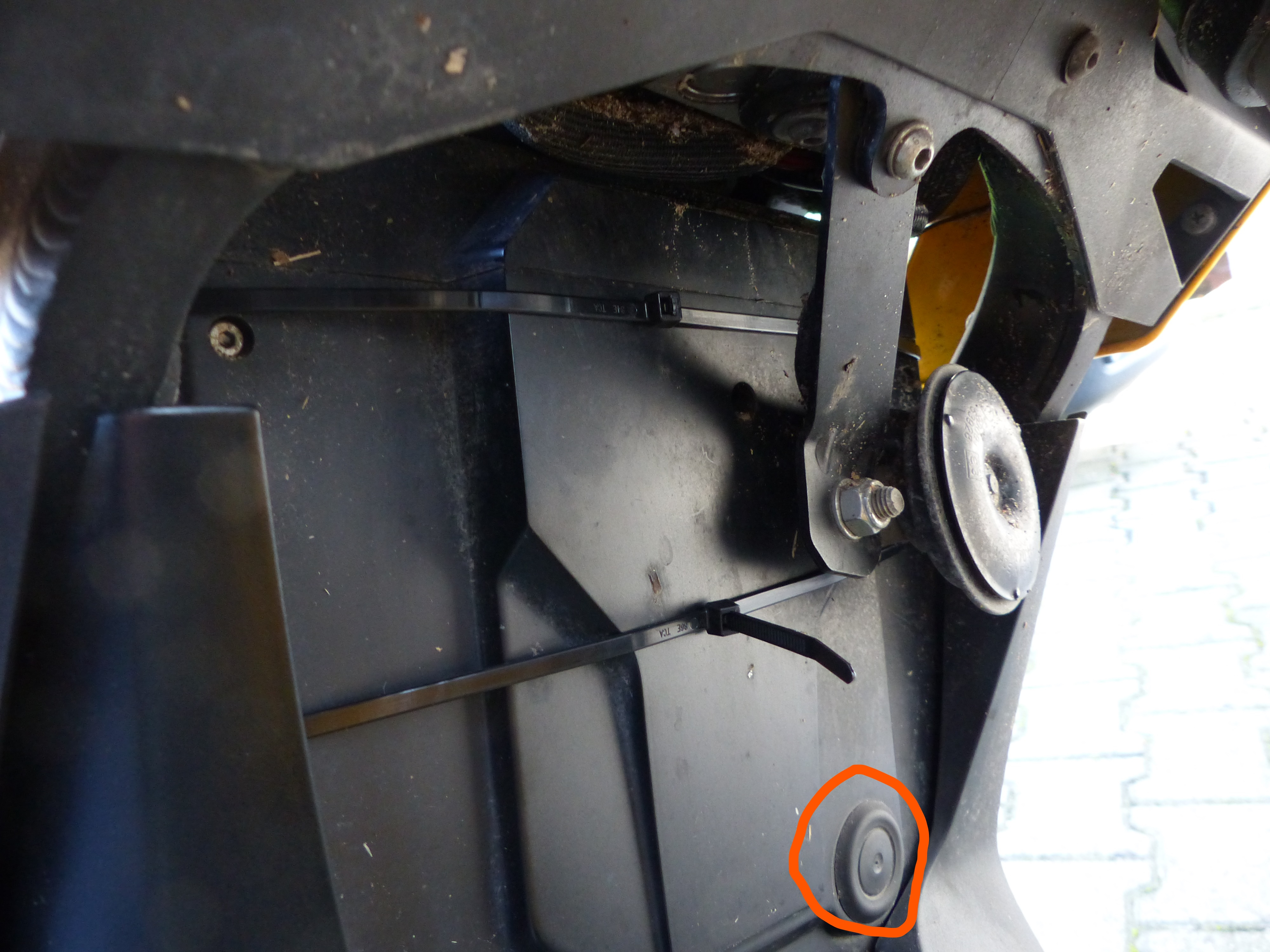 Vorn in der Kunststoffabdeckung vom BMS gibt es einen oder zwei (je nach Baujahr) Gummistöpsel. Der BMS Zugang befindet sich im unteren bzw. dem einzigen und dürfte mit einem dielektrischen Fett aufgefüllt sein, zum Schutz vor eintretender Feuchtigkeit. Der Stopfen: