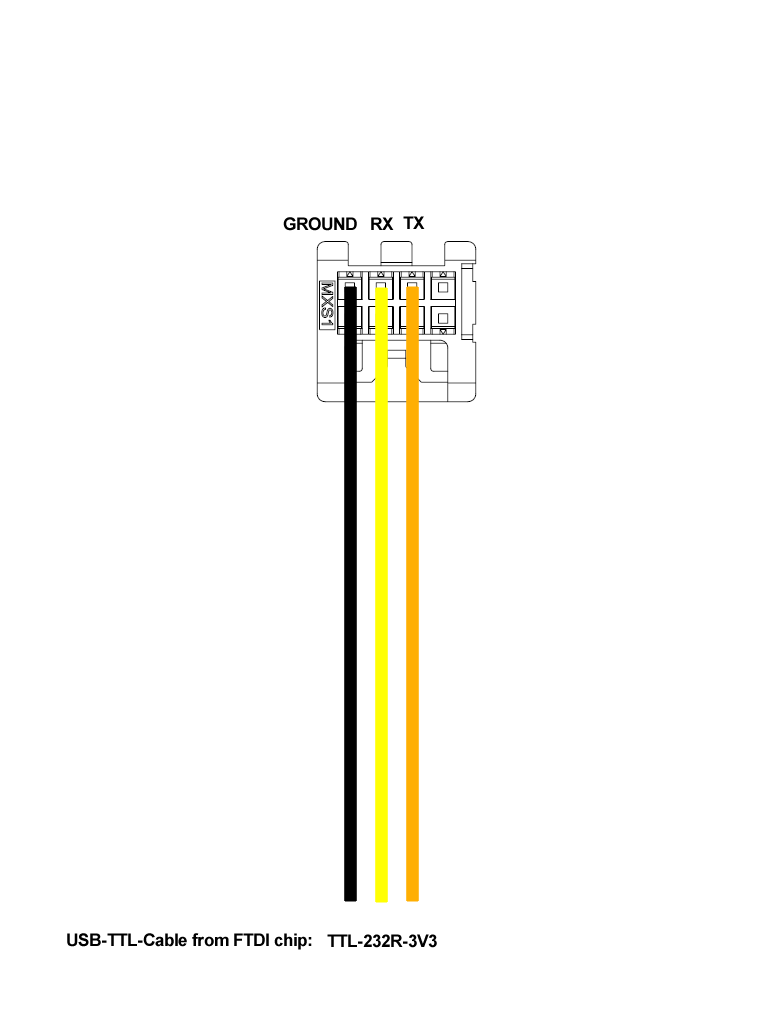 Als erstes muss man die Einzelkontakte am Kabelende vom USB-TTL Adapter abzwicken. Rot, braun und grün brauchen wir nicht, die kann man bis zur Kabelumhüllung abzwicken.