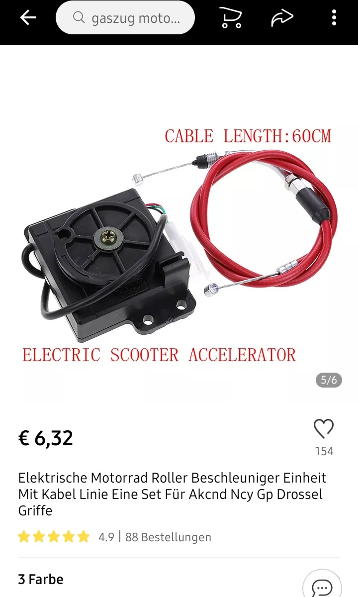 Einen Gaszug habe ich bei Aliexpress gefunden inklusive passendem Potentiometer, werde ich mal als Reserve bestellen, und den dazu kann man dann als Vorlage für einen längeren nehmen.